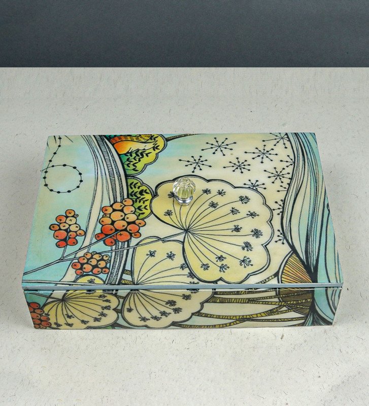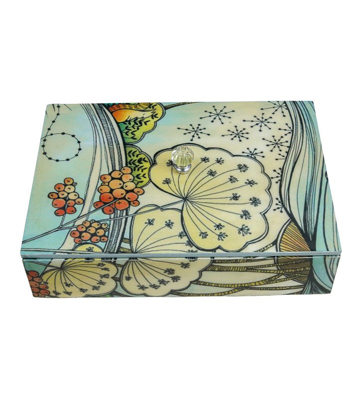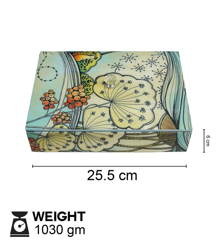 Minakari Hand Crafted Floral Wooden Multi Utility Rectangle Storage Pin On Tin Jar For Kitchen