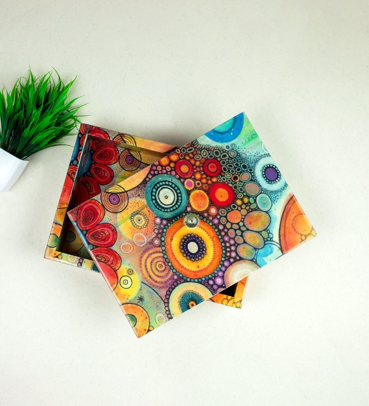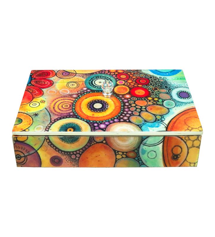 Minakari Hand Crafted Wooden Multi Utility Rectangle Storage Pin On Tin Jar For Kitchen