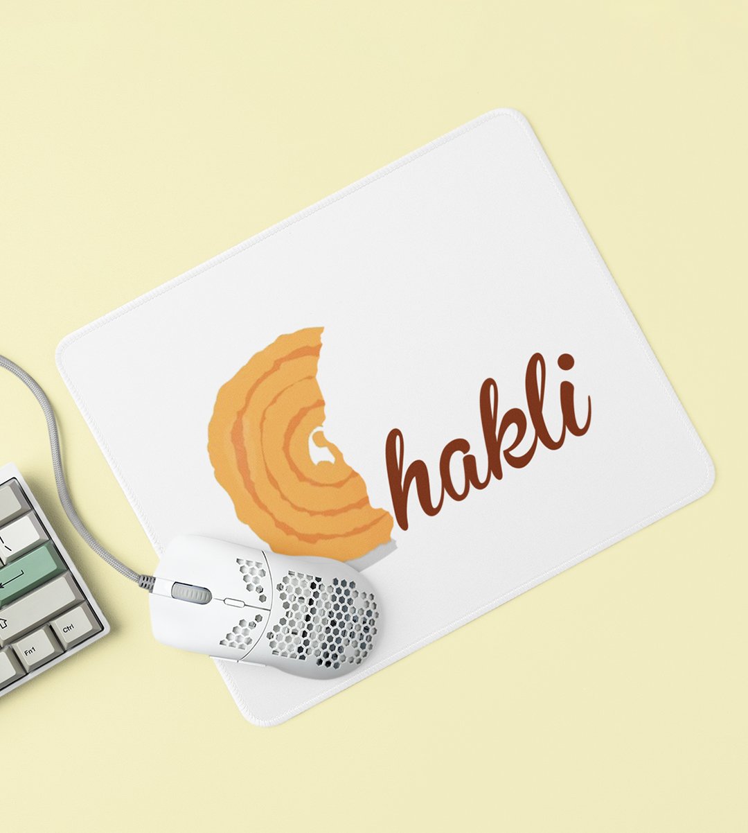 Add a touch of crispiness to your workspace with our Chakli Delight Mouse Pad. It celebrates the crispy festive temptation of Diwali.