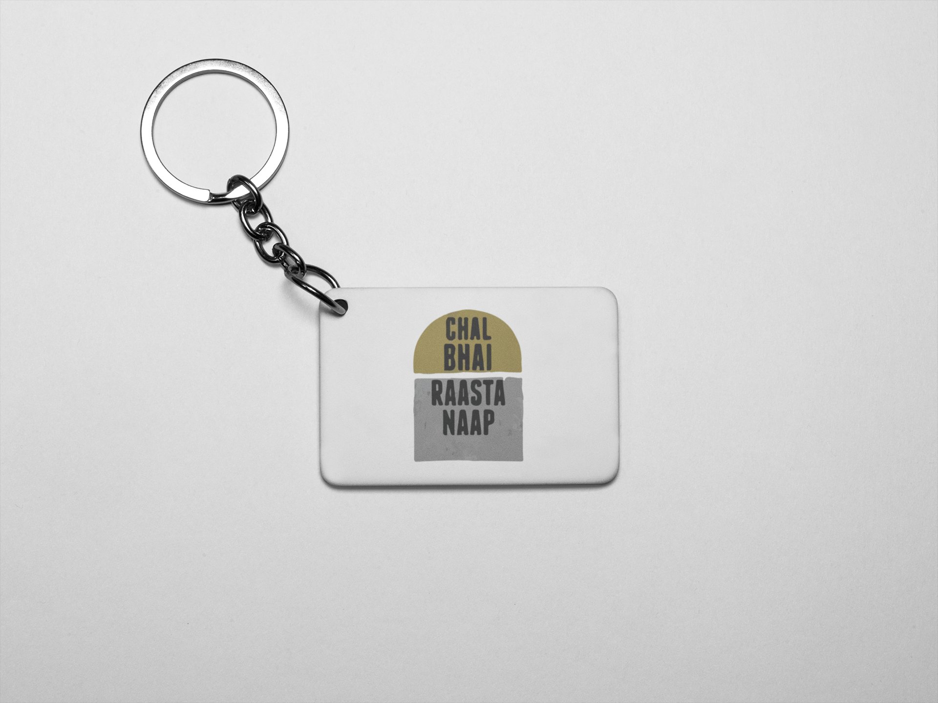 Chal Bhai Raasta Naap- acryllic printed white keychains/ keyrings for bollywood lover people(Pack Of 2)