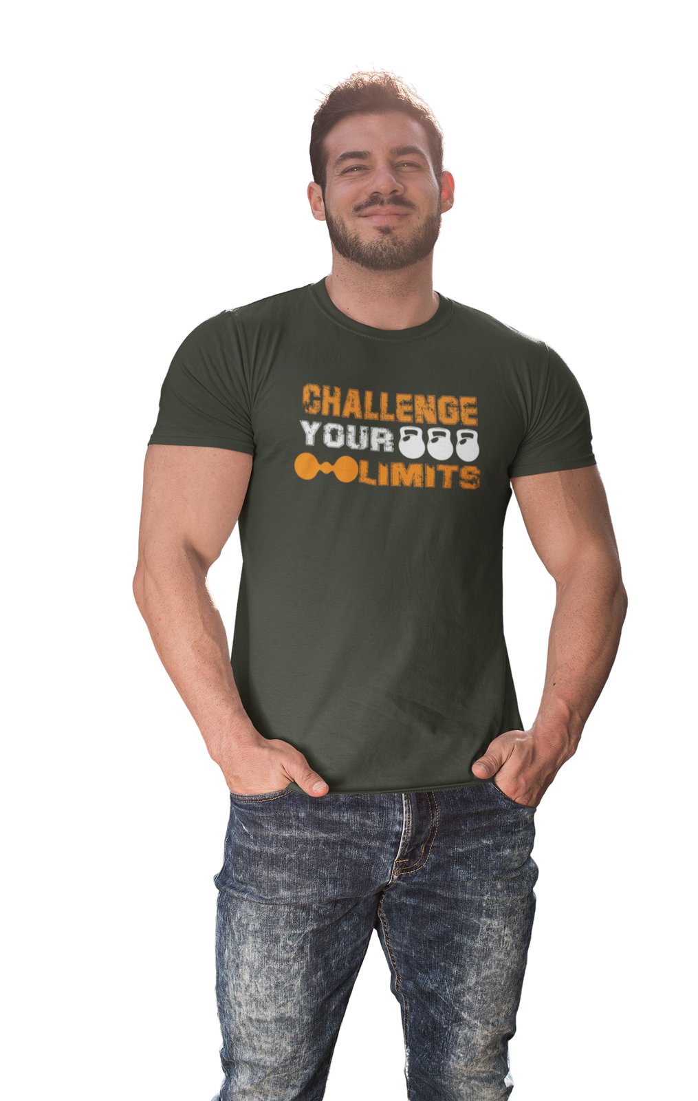 Challenge Your Limits, (BG Yellow and White), Round Neck Gym Tshirt - Foremost Gifting Material for Your Friends and Close Ones