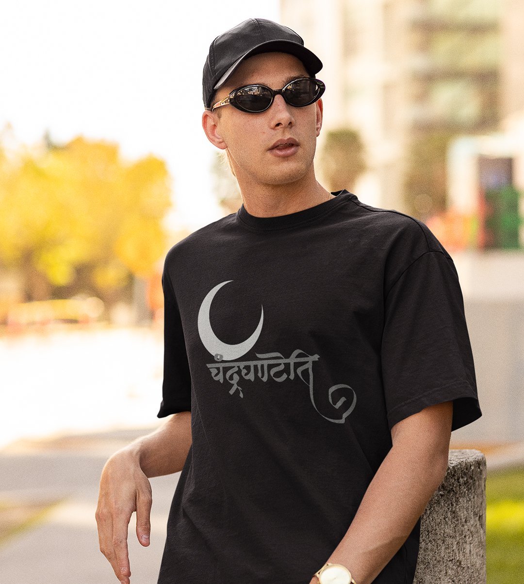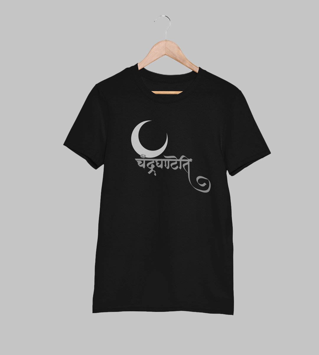 Chandradhantani printed unisex adults round neck cotton half-sleeve black tshirt specially for Navratri festival/ Durga puja