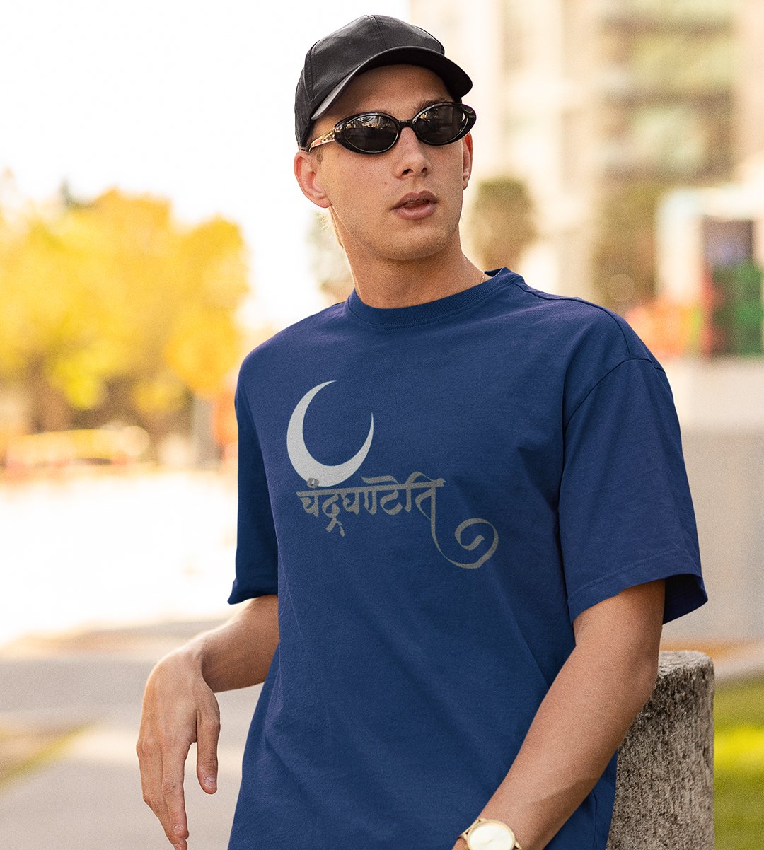 Chandradhantani printed unisex adults round neck cotton half-sleeve blue tshirt specially for Navratri festival/ Durga puja