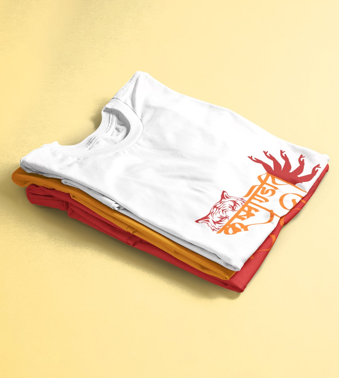 Navratri is a very auspicious festival for hindus. It takes place at the beginning of October and sometimes September. Enjoy the 9 days of festivities with full zeal and make yourself submerged in the love of Maa Durga. Navratri is also known as Durga Puja. And with this Tees, you can shine like a star during this festive season with our navratri themed cotton half sleeved Tshirts. You can pair our t-shirts with trousers and denim of your choice and make it a weekday smart casual or weekend wear. This is durable. This tshirt is smooth and soft which makes you comfortable to wear during all seasons. The printing in it is durable and odourless. It has five sizes, S,M,L,XL,XXL. The Tshirt colour is intact even after repeated washes. It can be kept in your wardrobe and hangers. Please avoid washing mashine to clean this Tee, it may affect the print. Hand wash only. We have brought you many navratri related designs printed on our different colour Tshirts to choose from. Grab it now.