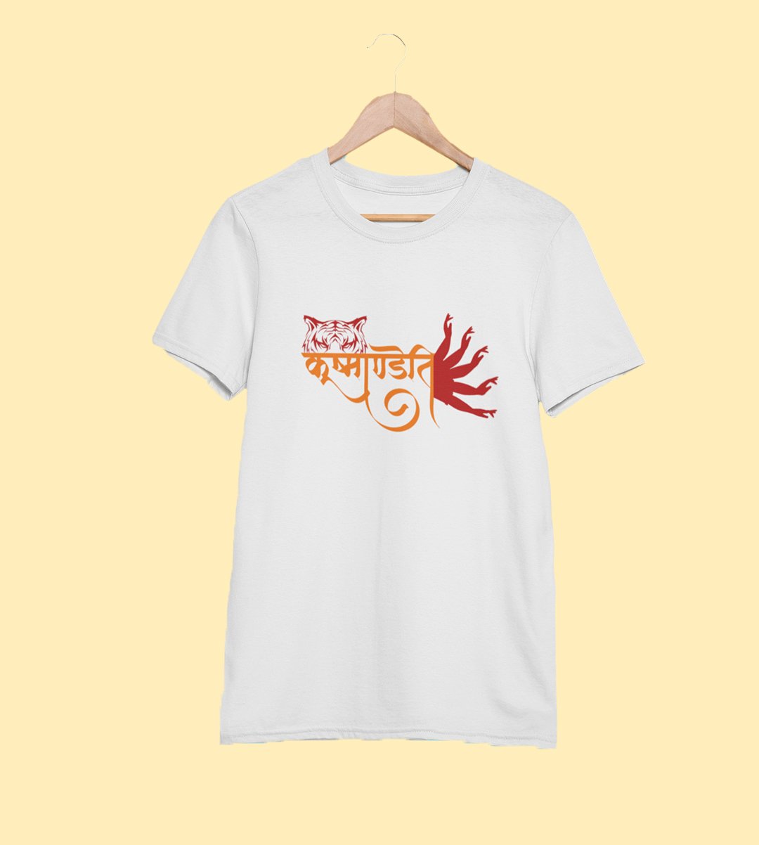 Chandradhantani printed unisex adults round neck cotton half-sleeve white tshirt specially for Navratri festival/ Durga puja