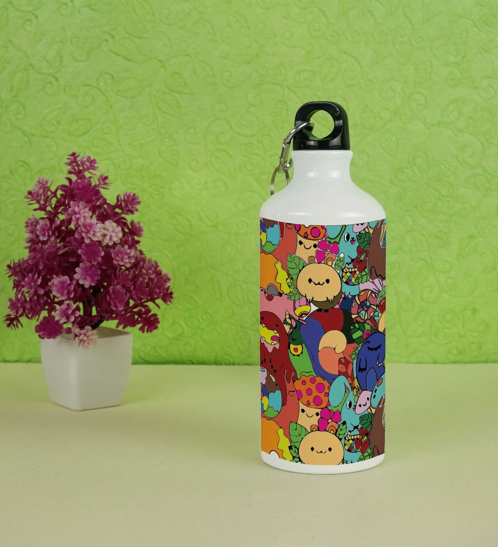 Charming Cartoon Insects That Spark Joy Doodles Printed Aluminium Water Bottle 600ml