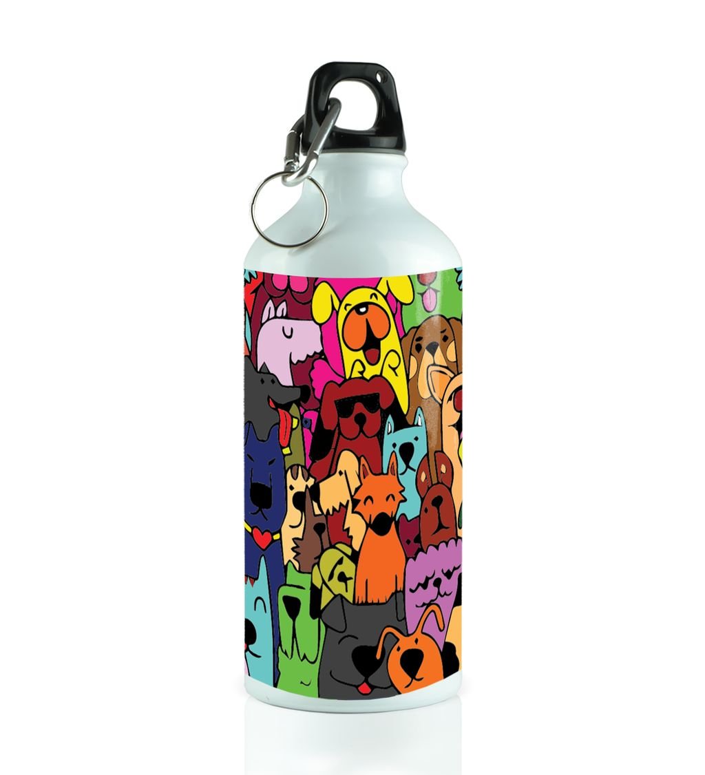 Charming Colorful and Cheerful Dog Characters Doodles Printed Aluminium Water Bottle 600ml