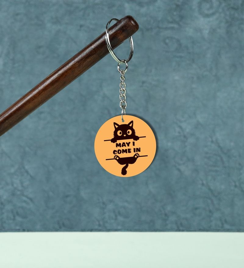 Charming Kitty Saying May I Come In Printed Round Keychain Pack of 2