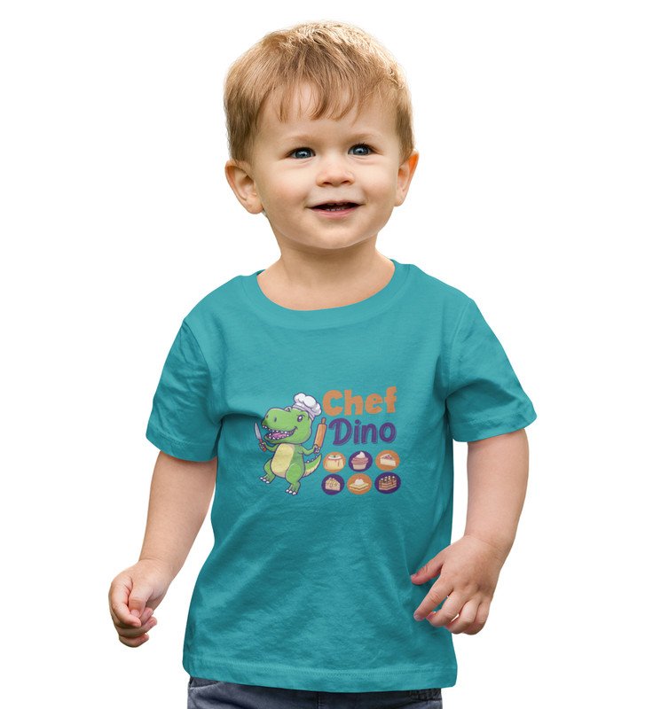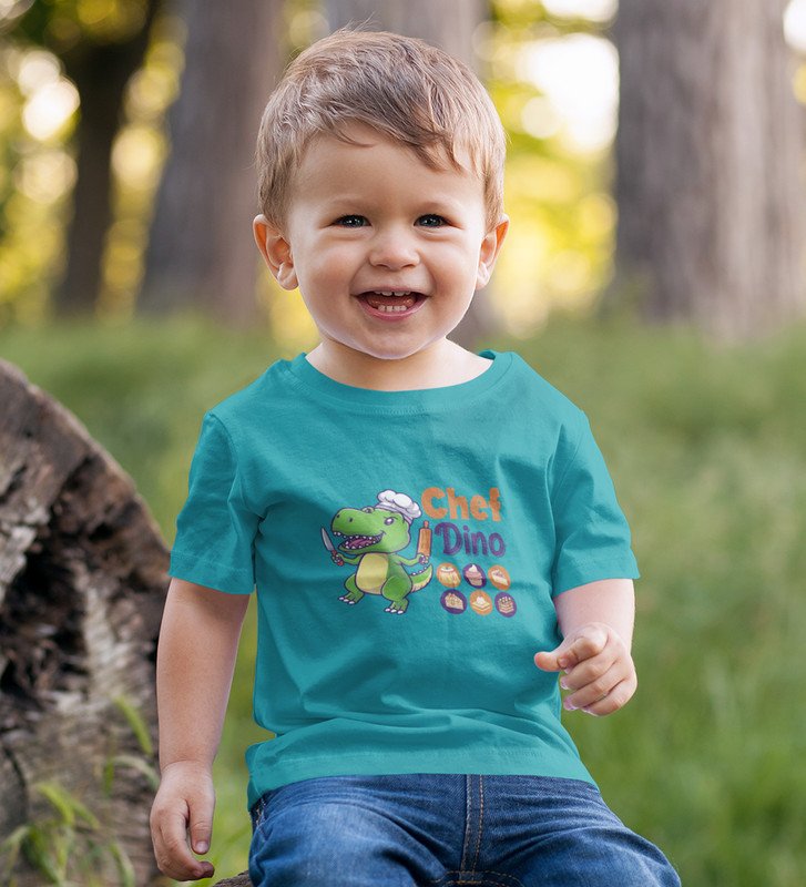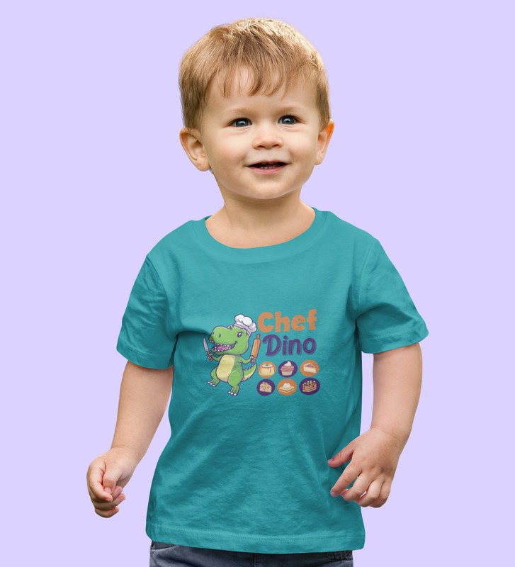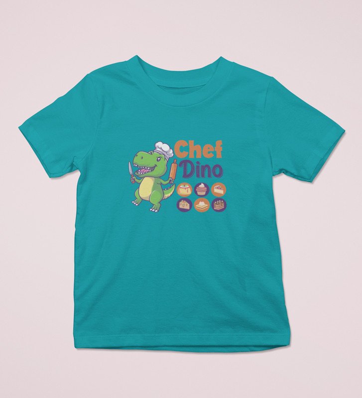 Chef Dino, Printed Cotton Tshirt (Red) for Boys