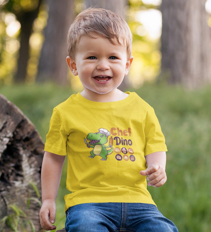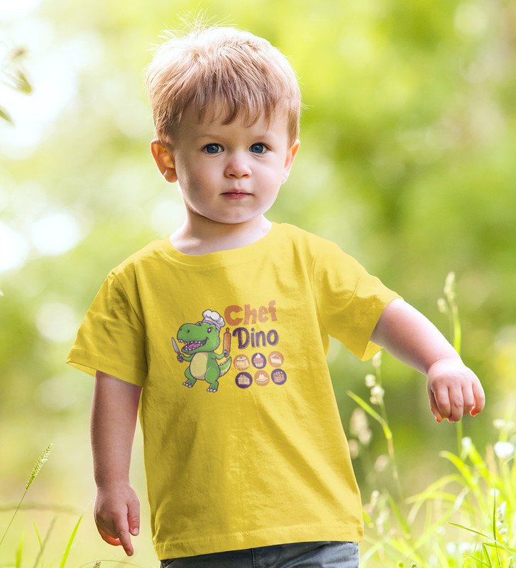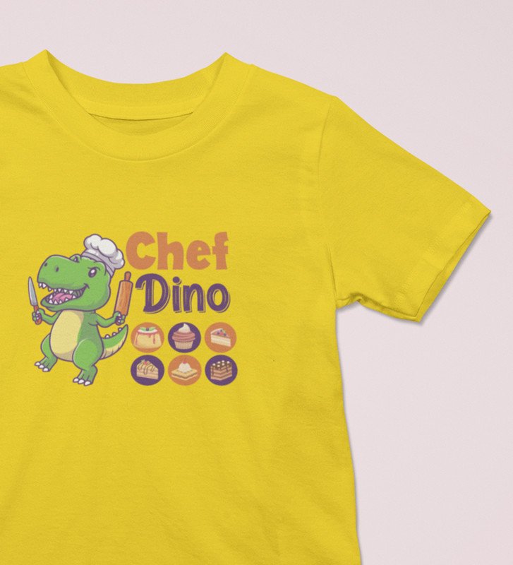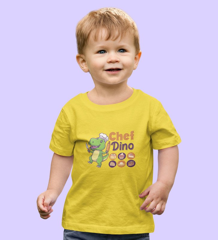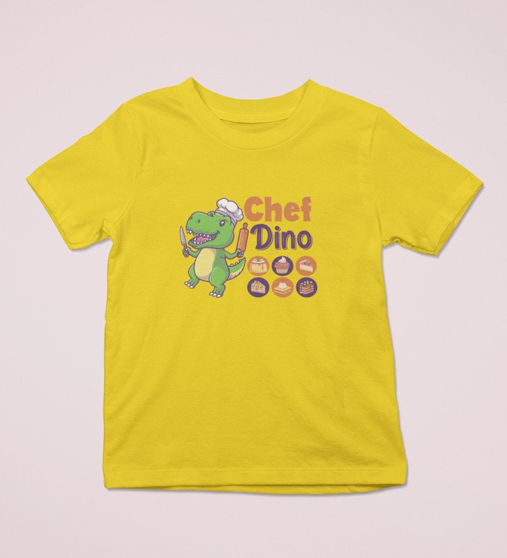 Chef Dino, Printed Cotton Tshirt (Yellow) for Boys