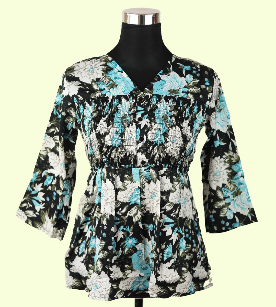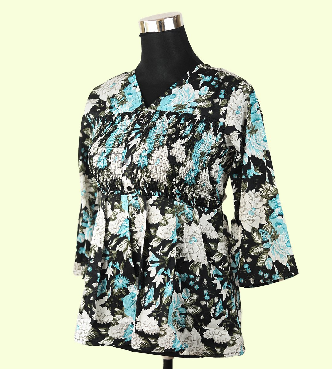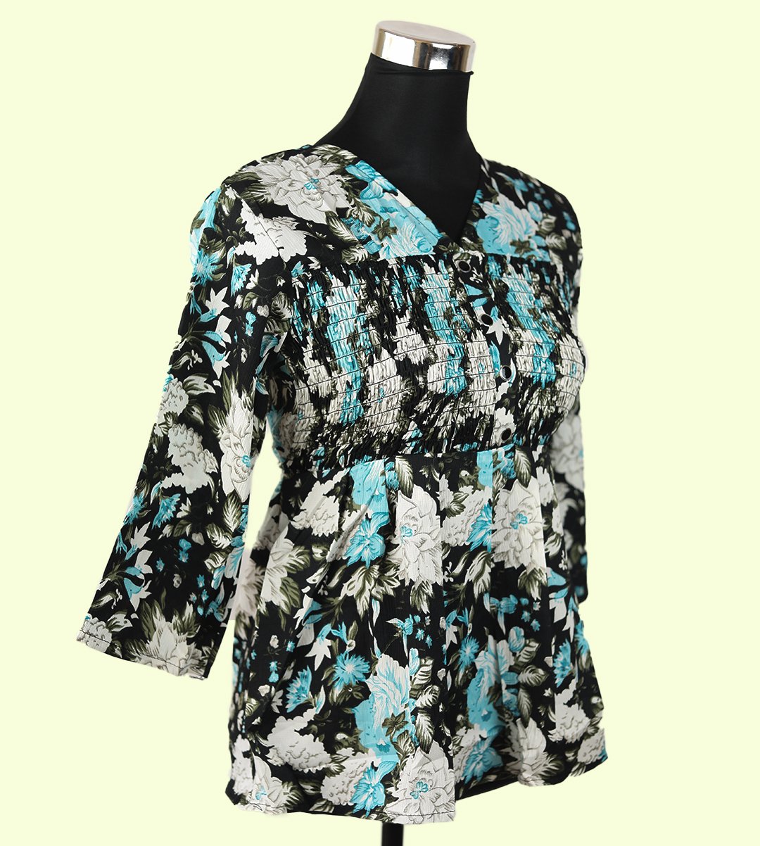 Elevate your fashion with our Chic Women's Floral V-Neck Top, showcasing a captivating combination of monochrome and blue in a mixed floral print. This top features a classic V-neck design and a regular fit, making it perfect for various occasions. Crafted from soft Rayon fabric, this top is both stylish and breathable, ensuring comfort throughout the day. The captivating mixed floral pattern adds a stunning and eye-catching dimension to your look.