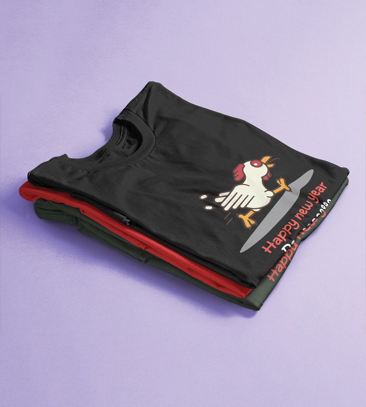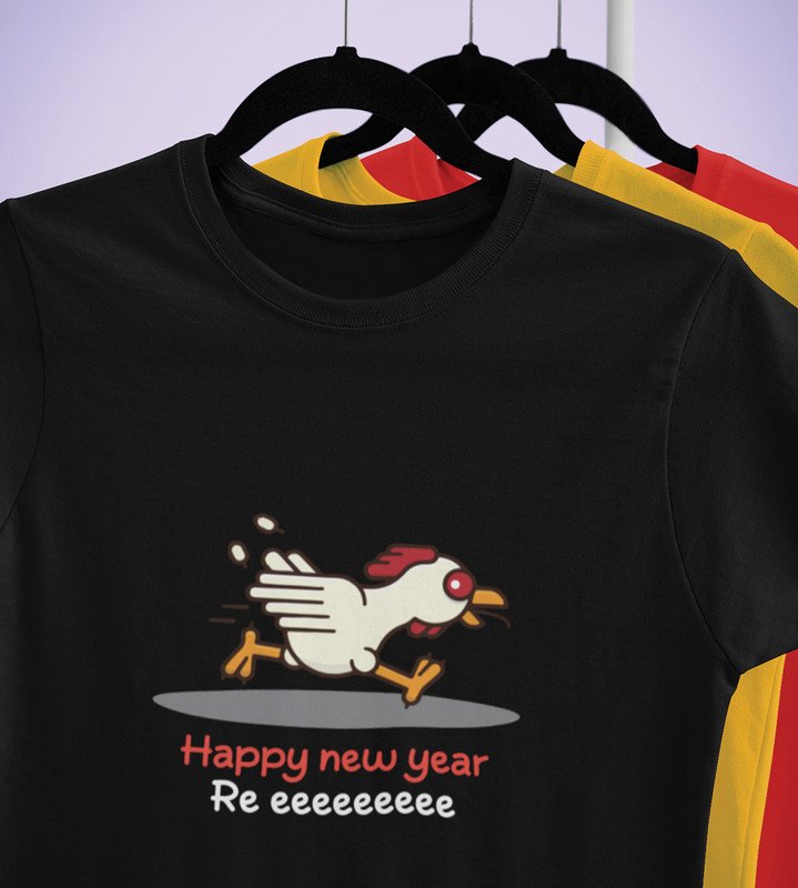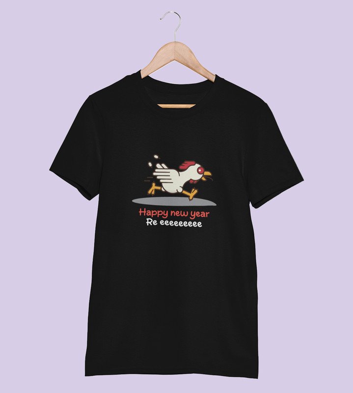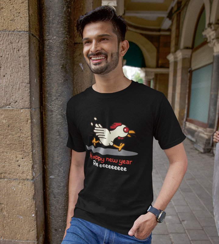 Chicken's New Year Black Graphic Printed T-shirt For Mens Boys