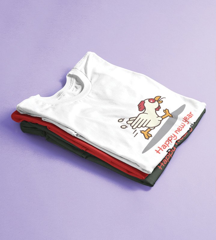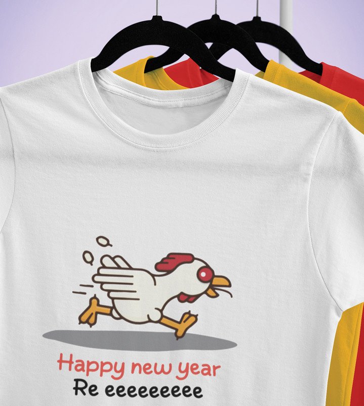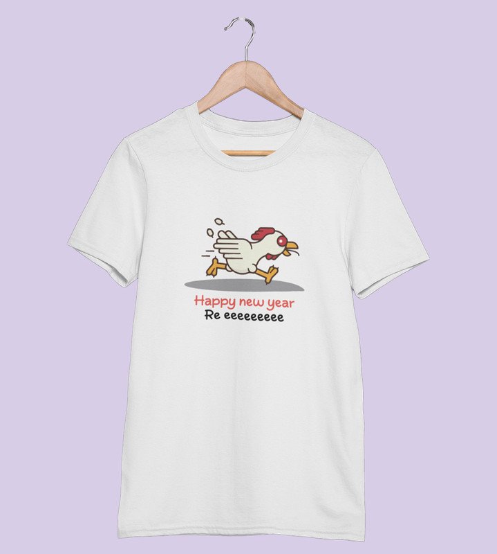 Chicken's New Year White Graphic Printed T-shirt For Mens Boys
