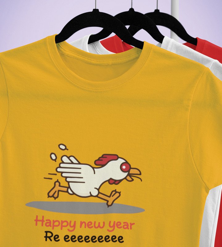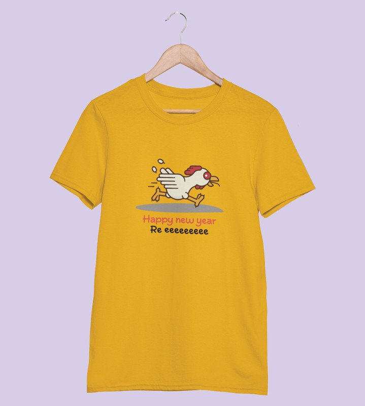 Chicken's New Year Yellow Graphic Printed T-shirt For Mens Boys