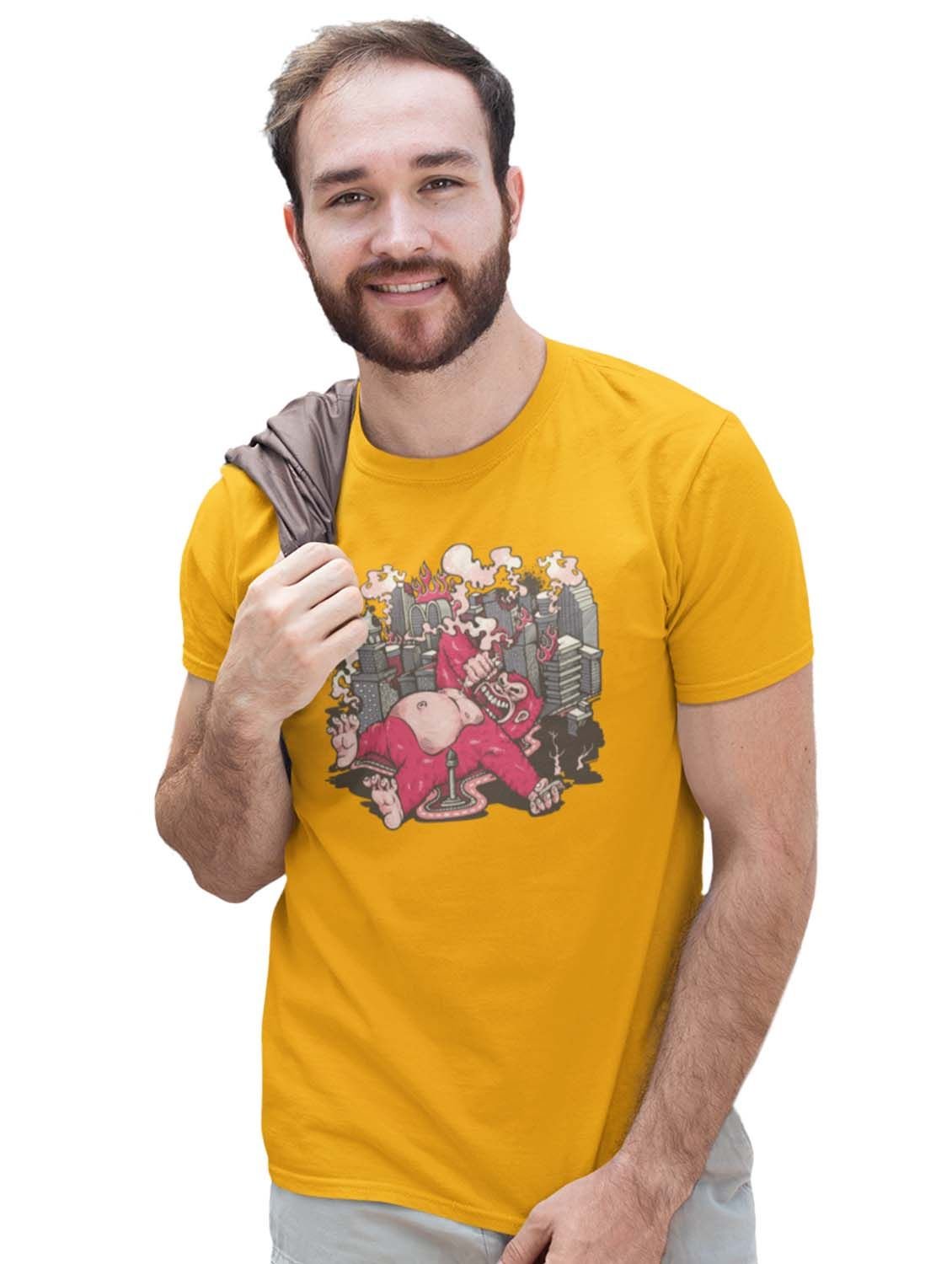 The Wrecker Yellow Round Neck Cotton Half Sleeved T-Shirt with Printed Graphics