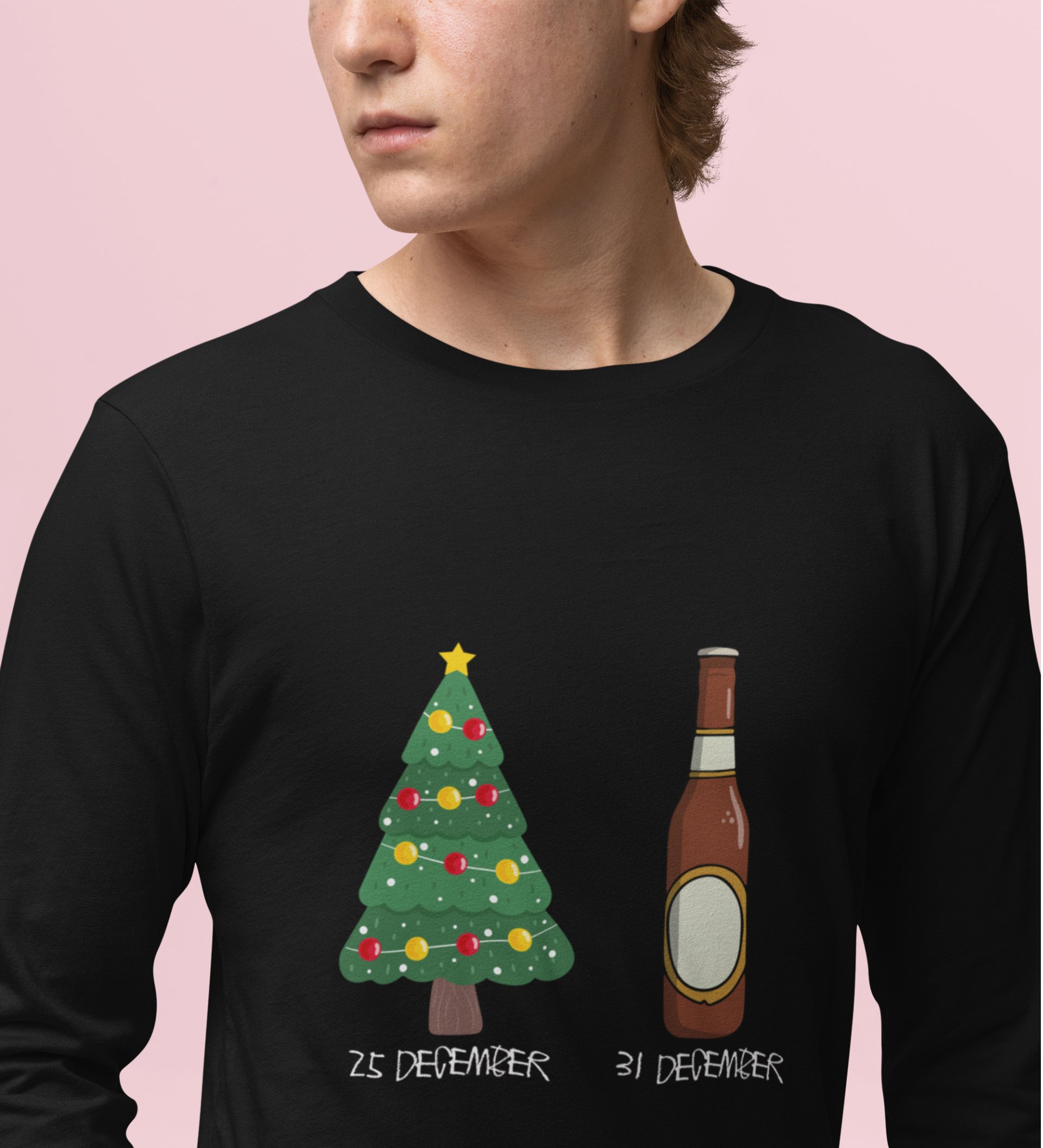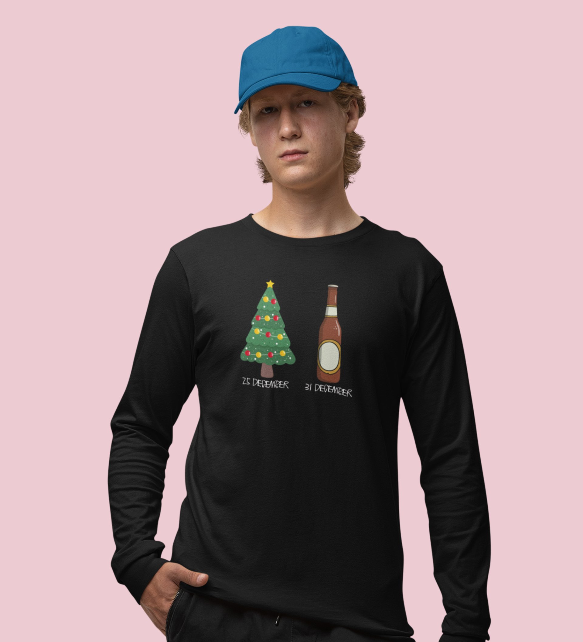 Christmas Cheer Later Chilled Beer: Humorously DesignedFull Sleeve T-shirt Black Perfect Gift For Secret Santa
