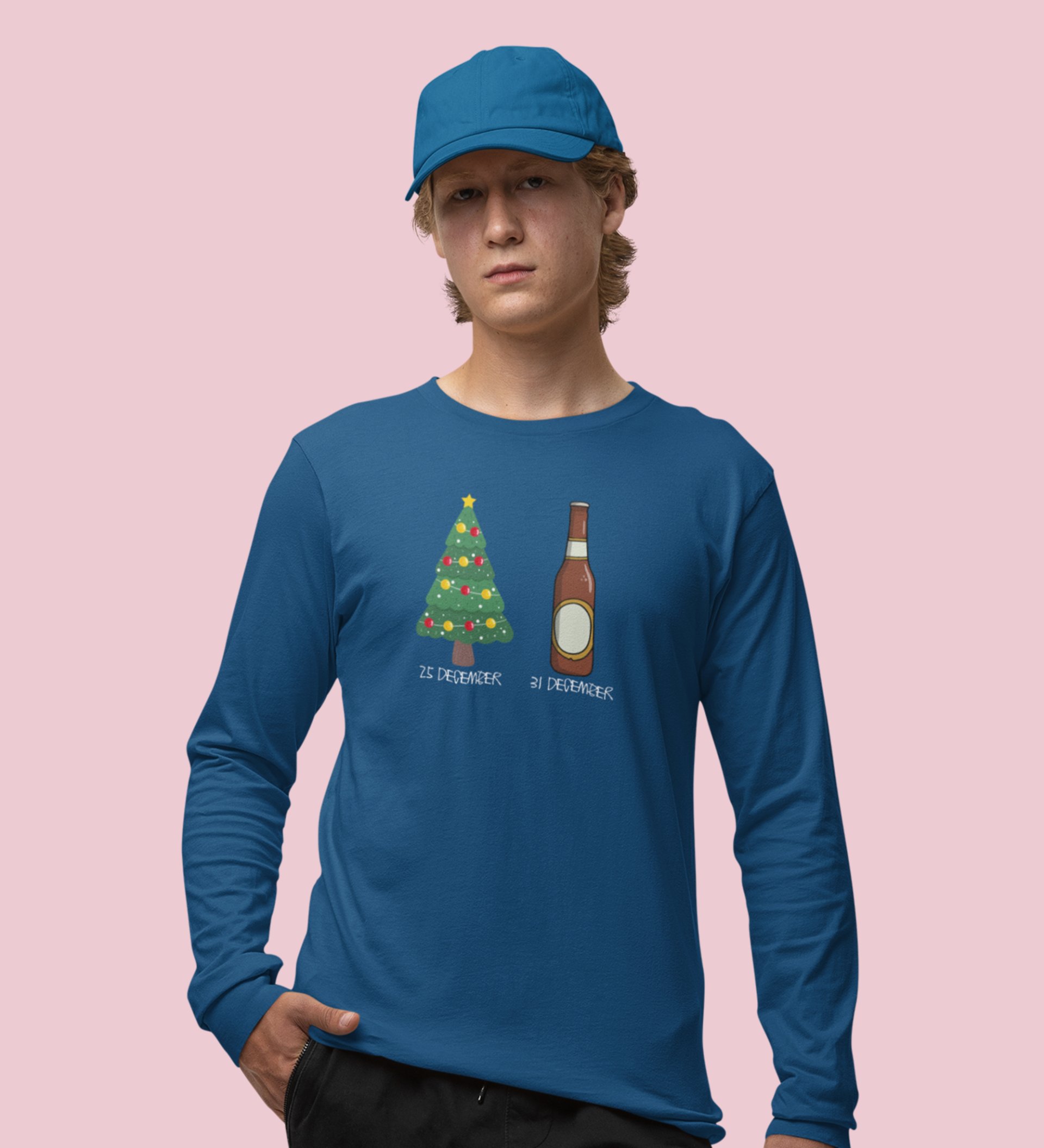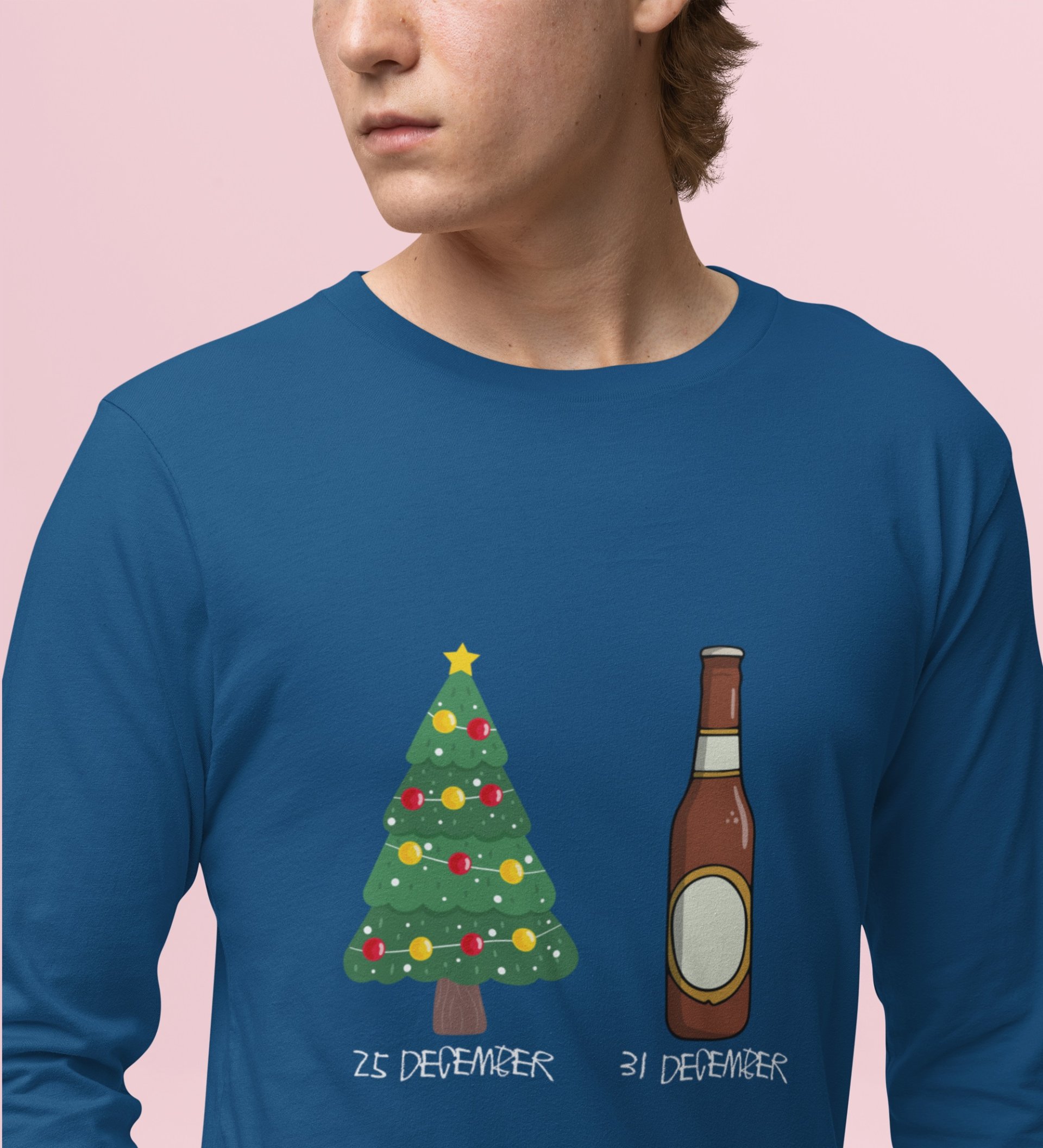 Christmas Cheer Later Chilled Beer: Humorously DesignedFull Sleeve T-shirt Blue Perfect Gift For Secret Santa