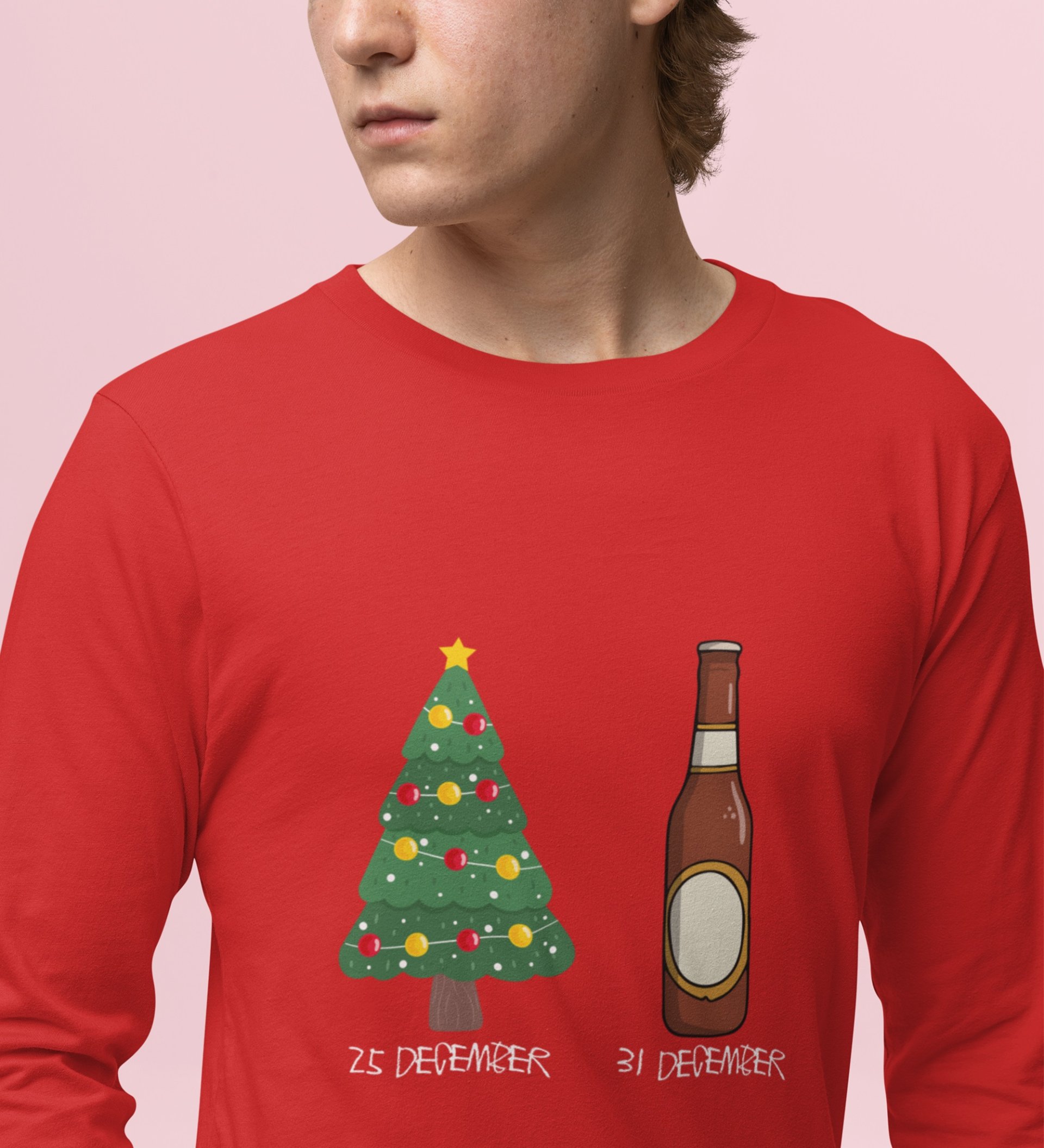 Christmas Cheer Later Chilled Beer: Humorously DesignedFull Sleeve T-shirt Red Perfect Gift For Secret Santa