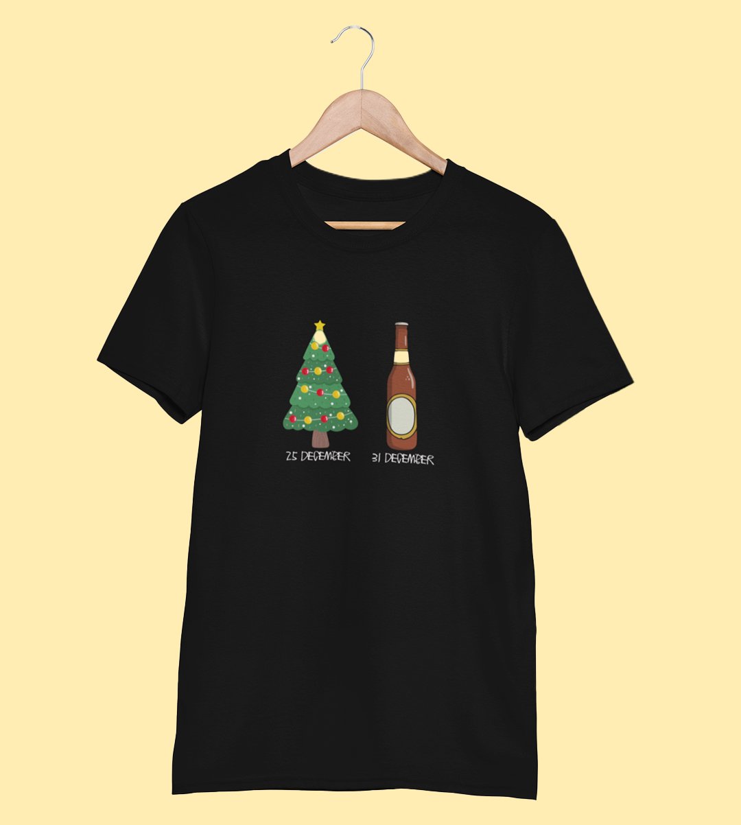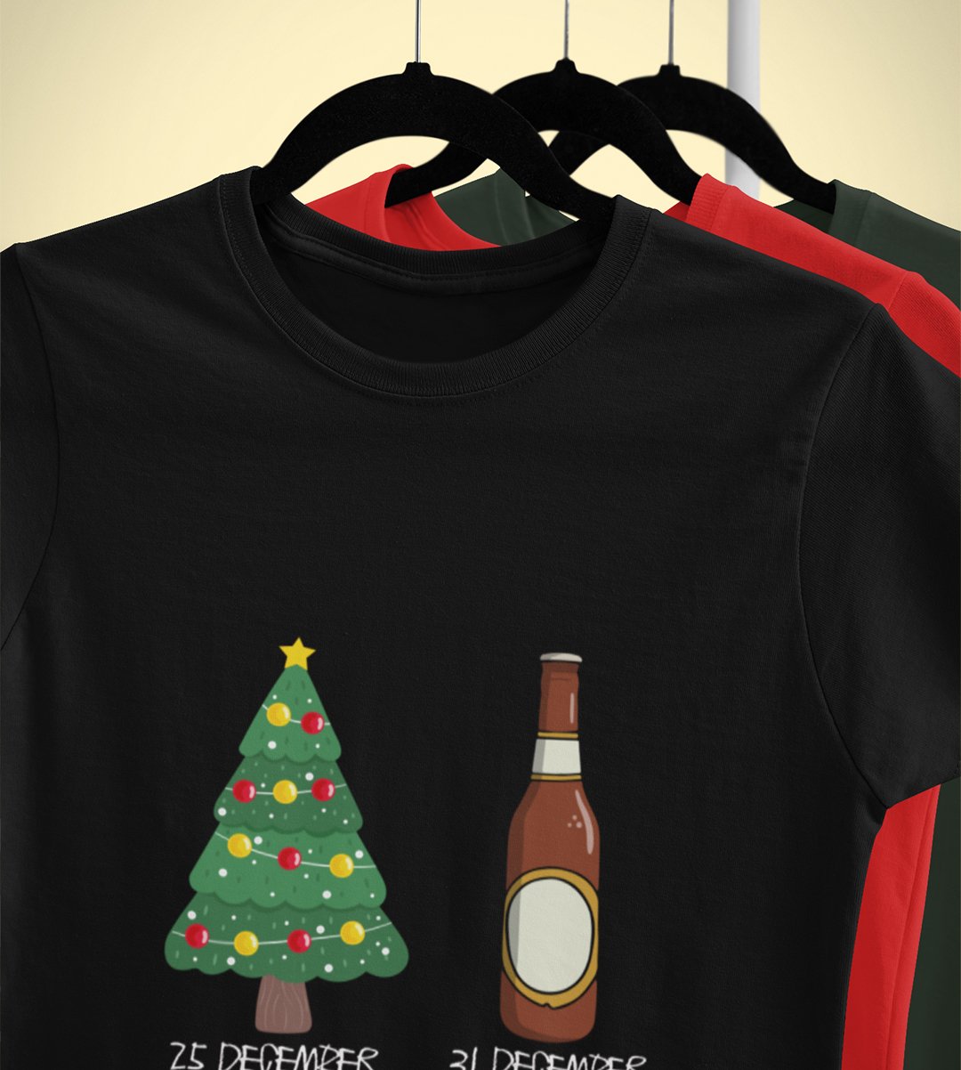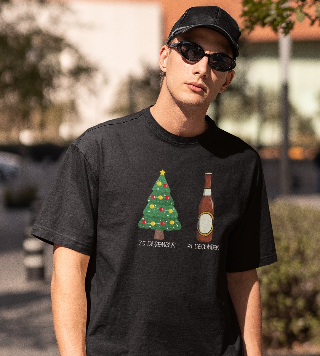 Christmas Cheer Later Chilled Beer: Humorously Printed T-shirt (Black) Perfect Gift For Secret Santa