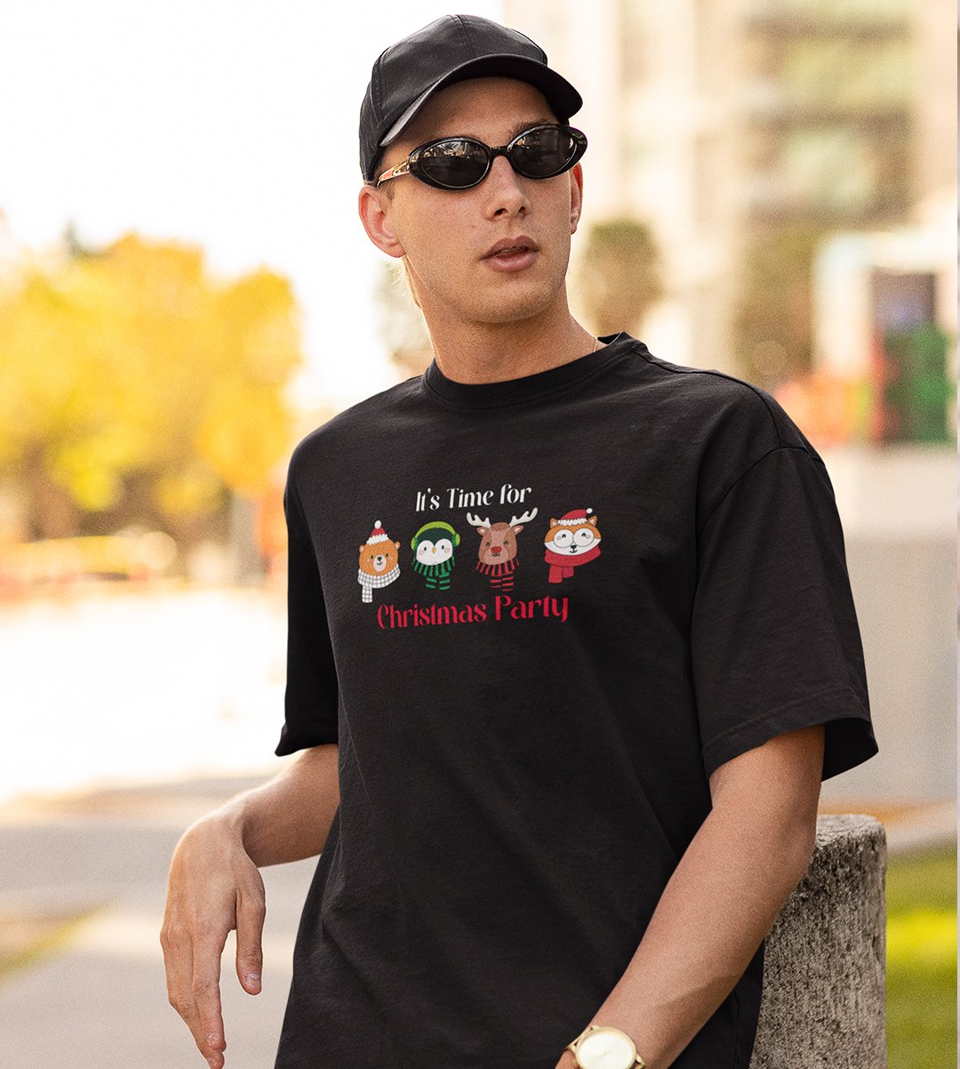 Christmas Party: Motivational Printed T-shirt (Black) Unique Gift For Secret Santa
