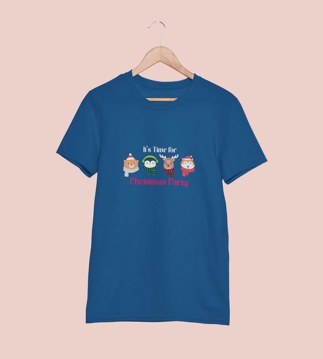Christmas Party: Motivational Printed T-shirt (Blue) Unique Gift For Secret Santa