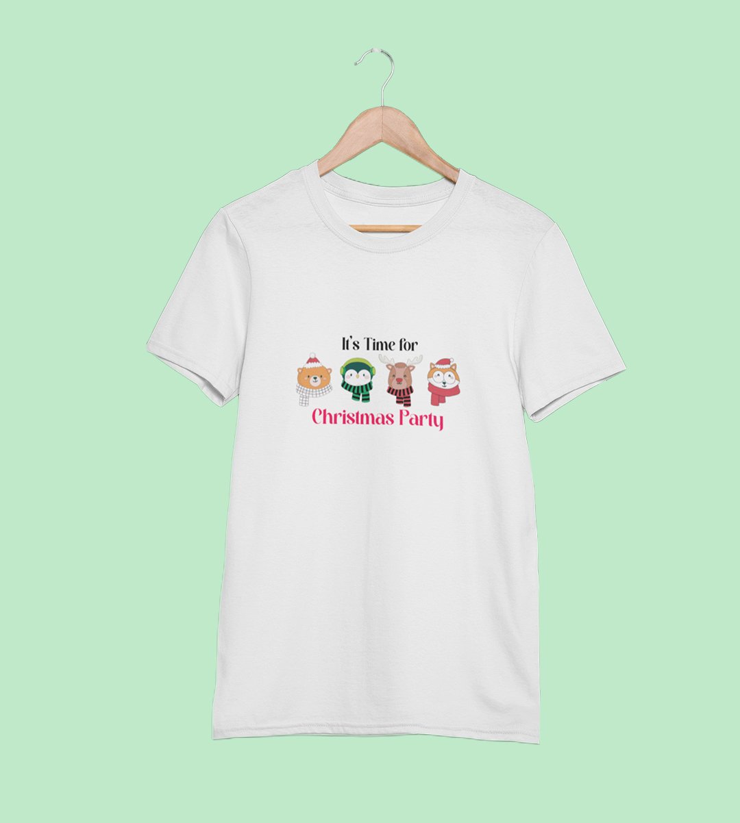 Christmas Party: Motivational Printed T-shirt (White) Unique Gift For Secret Santa