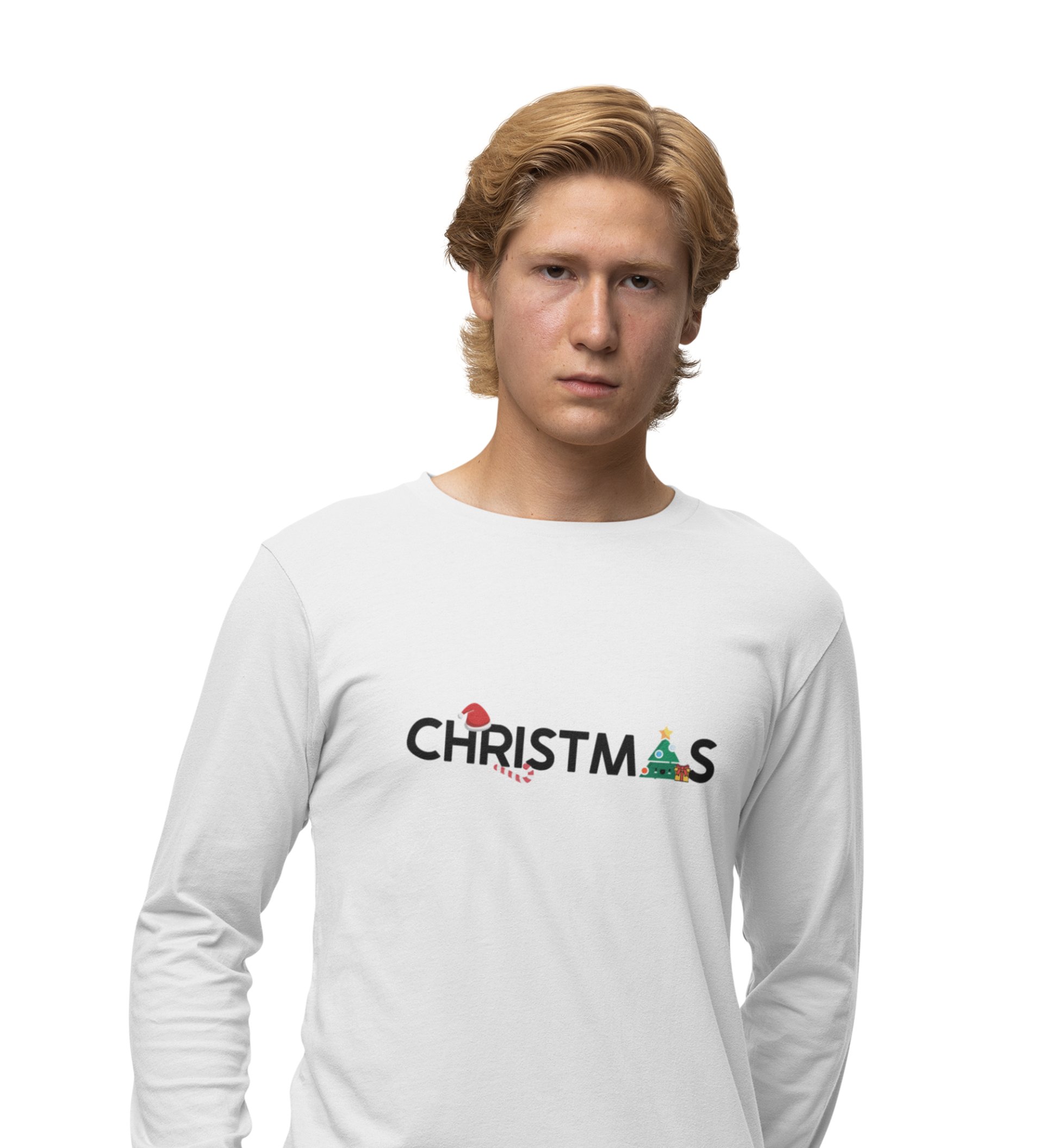 Christmas Time : Unique PrintedFull Sleeve T-shirt White Best Gift For Boys Girls