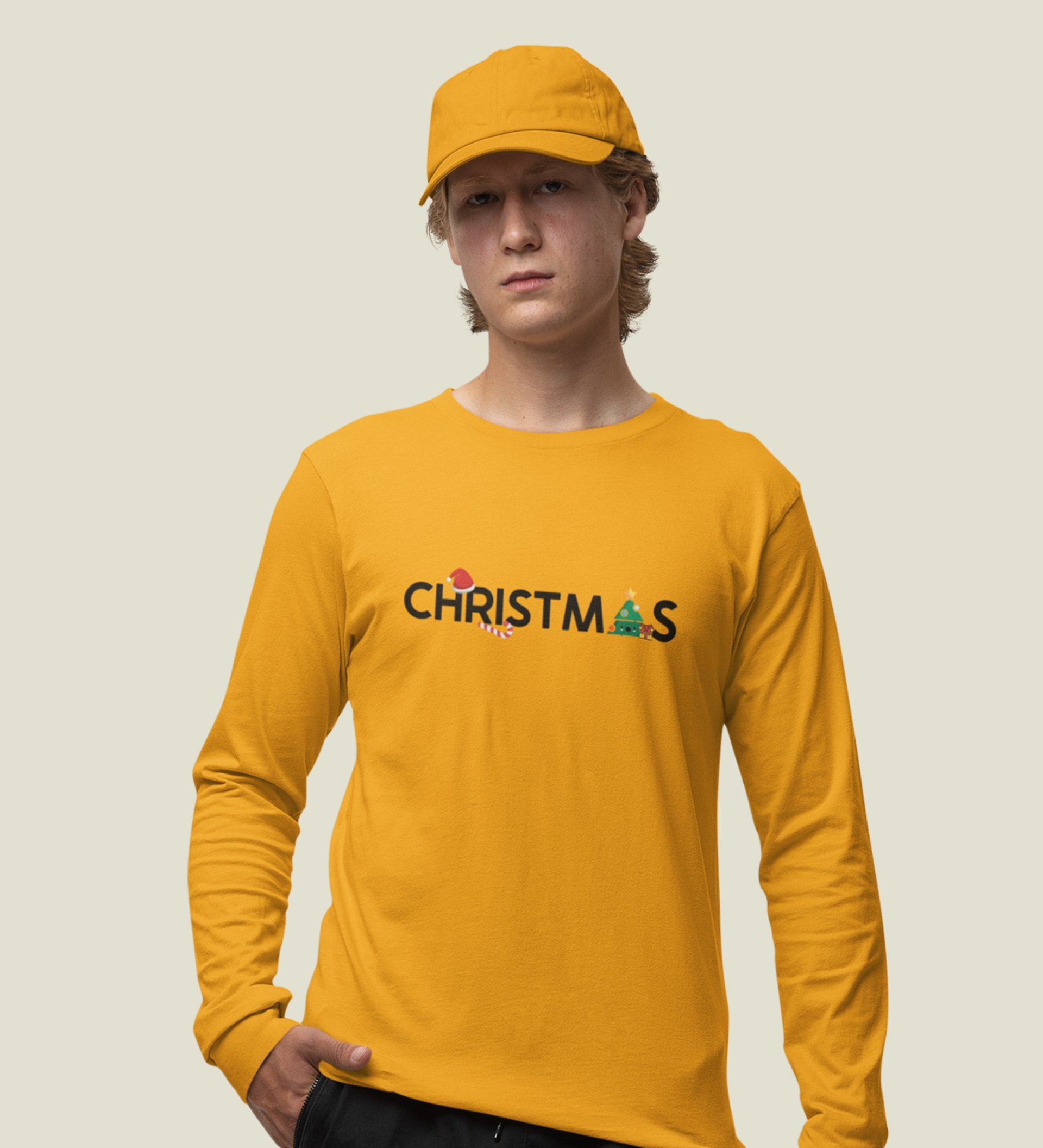 Christmas Time : Unique PrintedFull Sleeve T-shirt Yellow Best Gift For Boys Girls