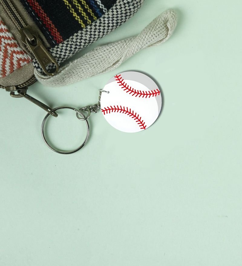 Classic Red Stitched Ball Inspired Printed Round Keychain Pack of 2