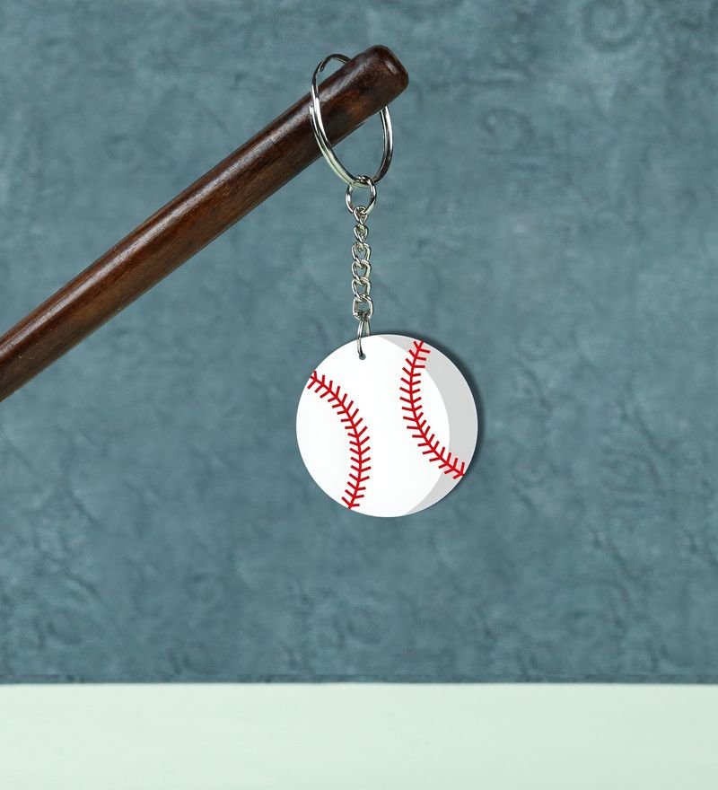 Add a sporty touch to your style with this Pack of 2 Printed Round Keychains. Featuring bold designs inspired by shot put, ping pong, baseball, and volleyball, they