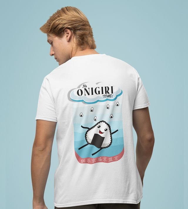Cloudy Skies: Rice Ball Rain Graphic Printed White T-shirt