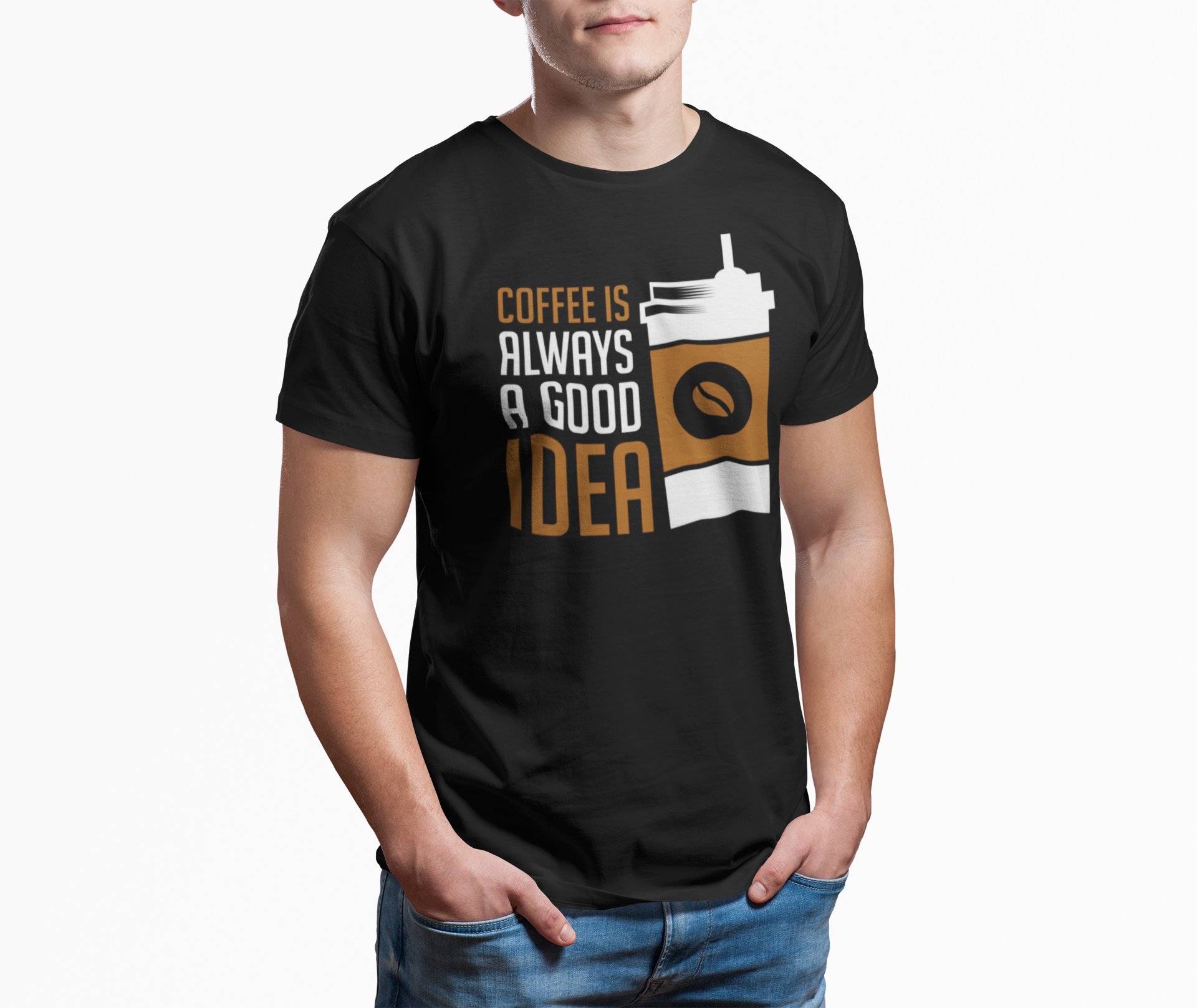 Coffe is always a good idea - Black - printed t shirt - comfortable round neck cotton.