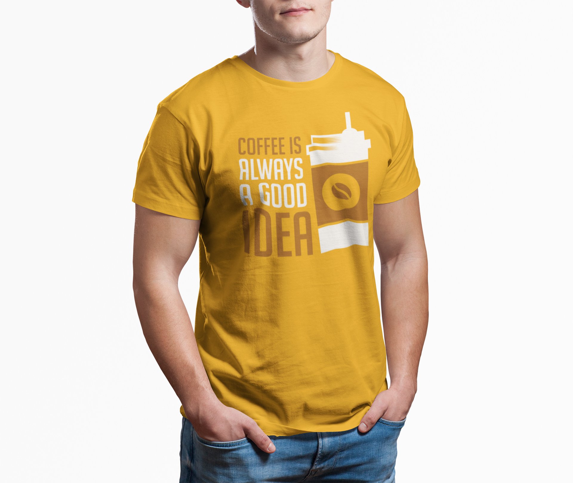 Coffe is always a good idea - Yellow - printed t shirt - comfortable round neck cotton.