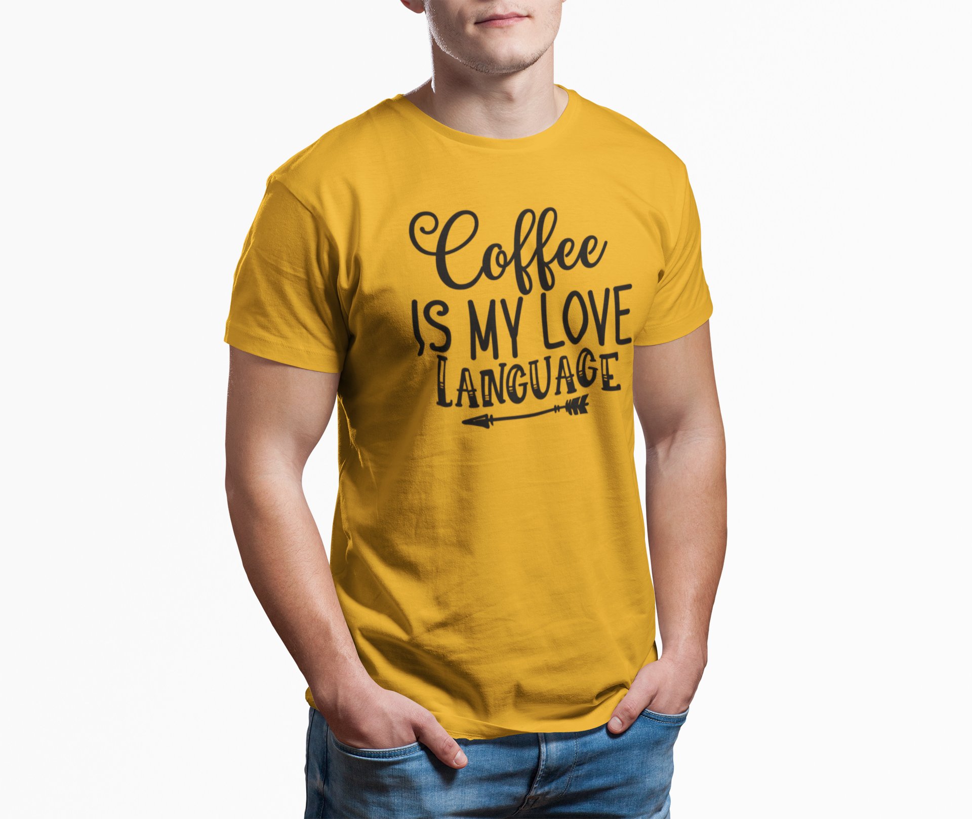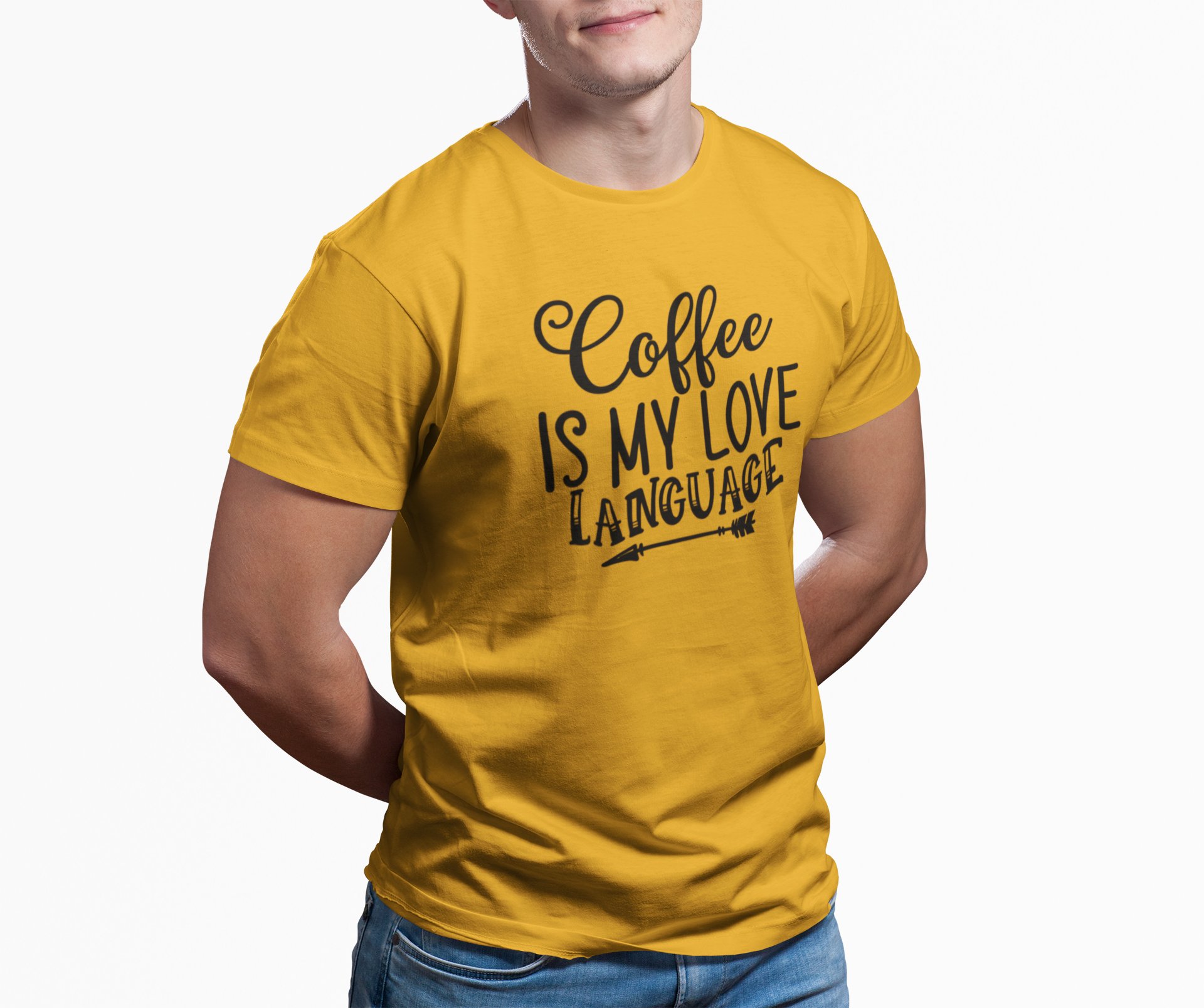 Coffe is my love language - Yellow - printed t shirt - comfortable round neck cotton.