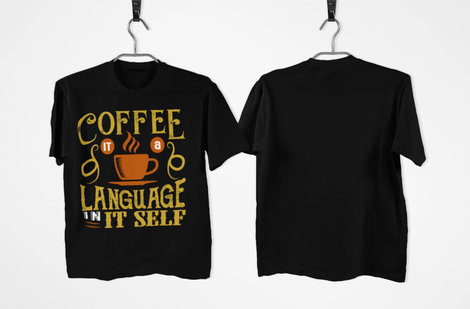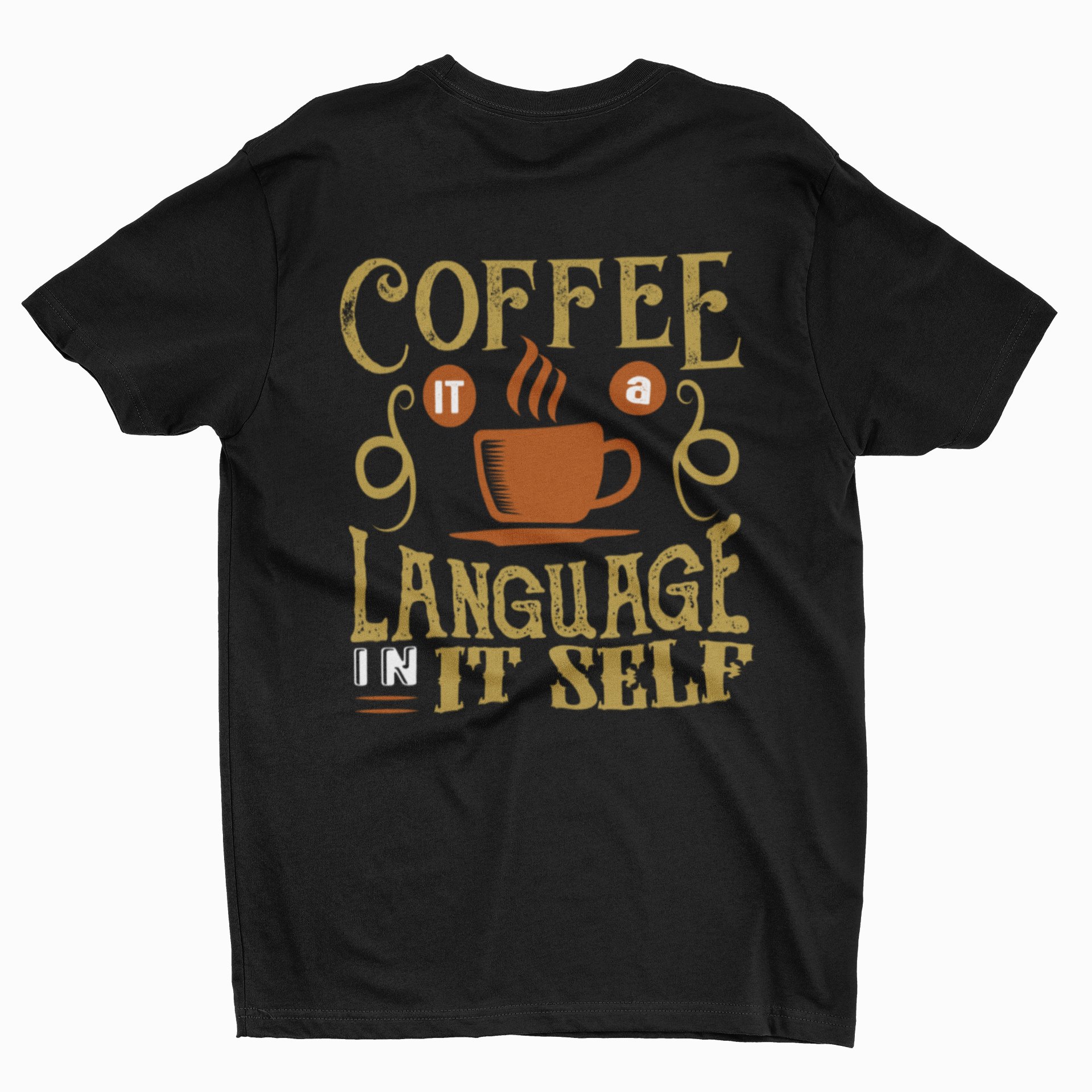 Coffe it a langauge in it slef - Black - printed t shirt - comfortable round neck cotton.