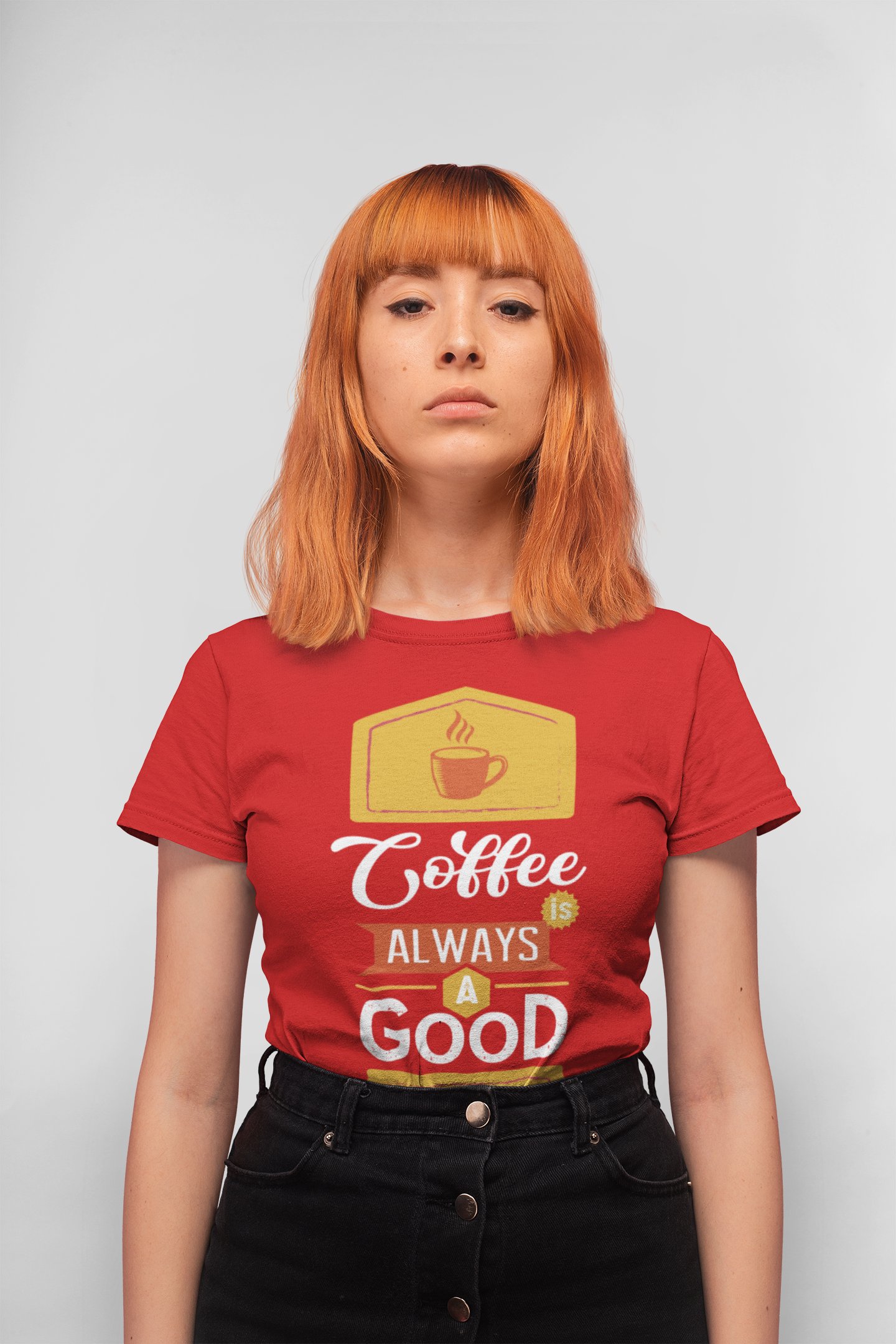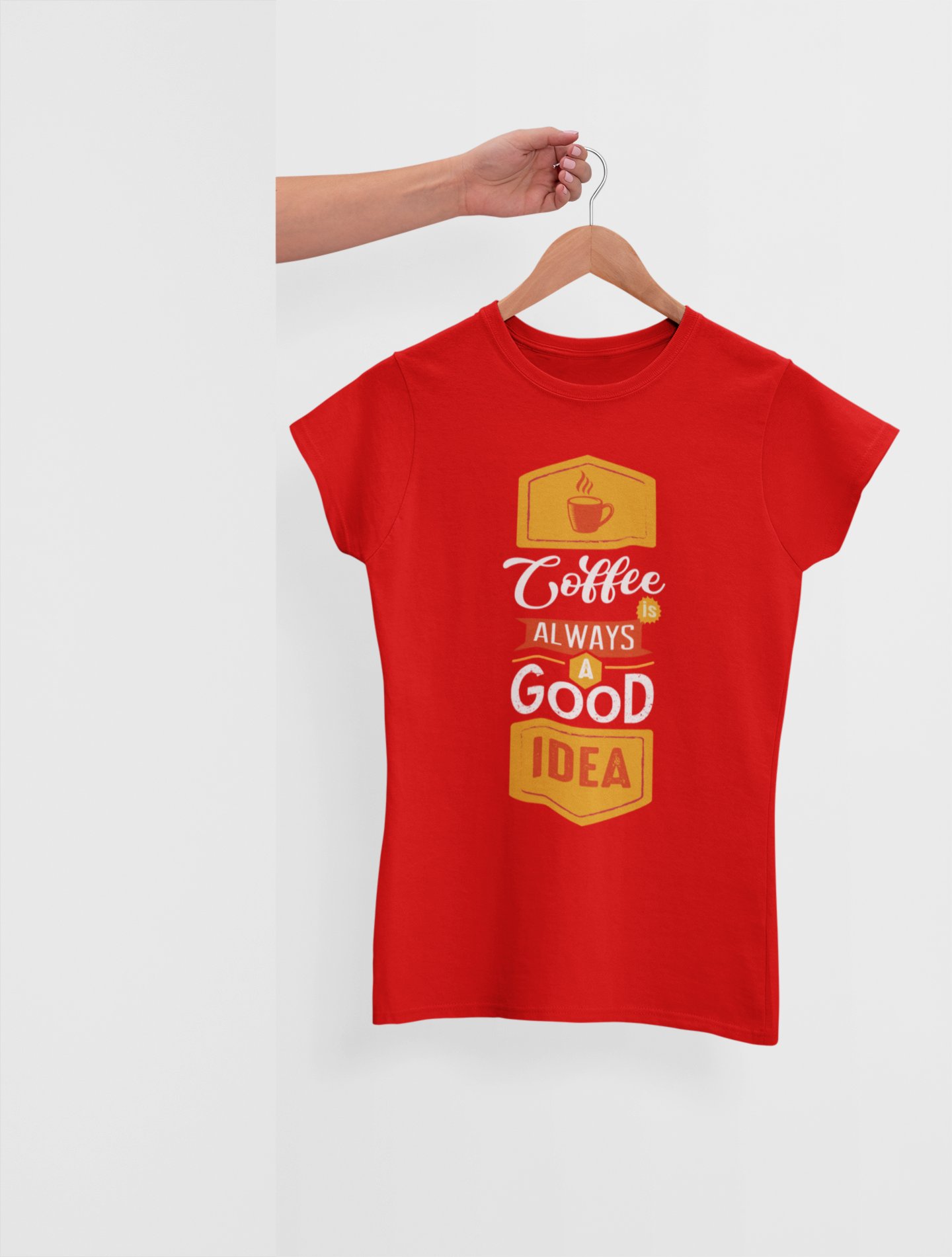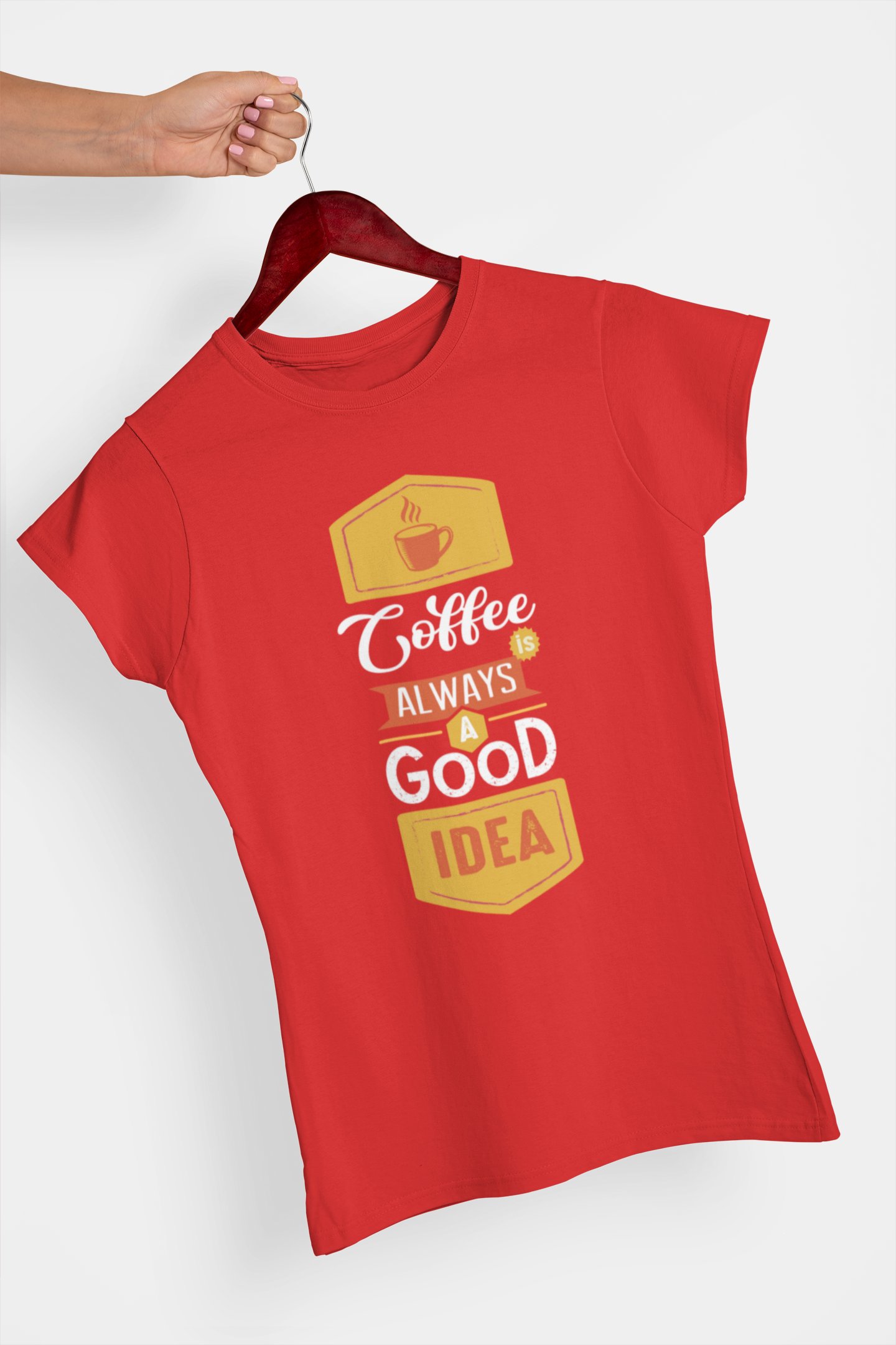 Coffee always a good idea - Red - printed t shirt - comfortable round neck cotton.