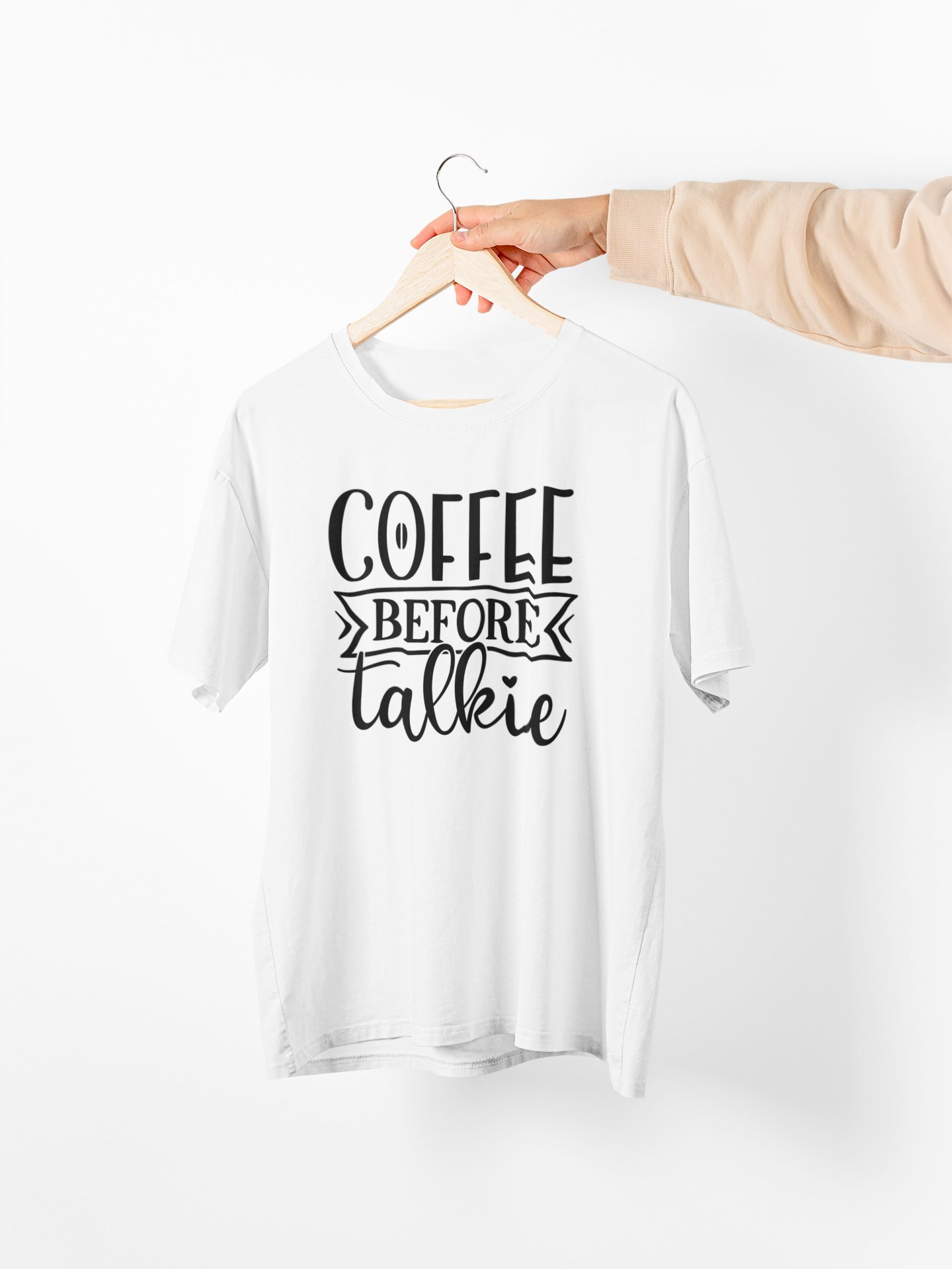 Coffee before talkie - White - printed t shirt - comfortable round neck cotton.