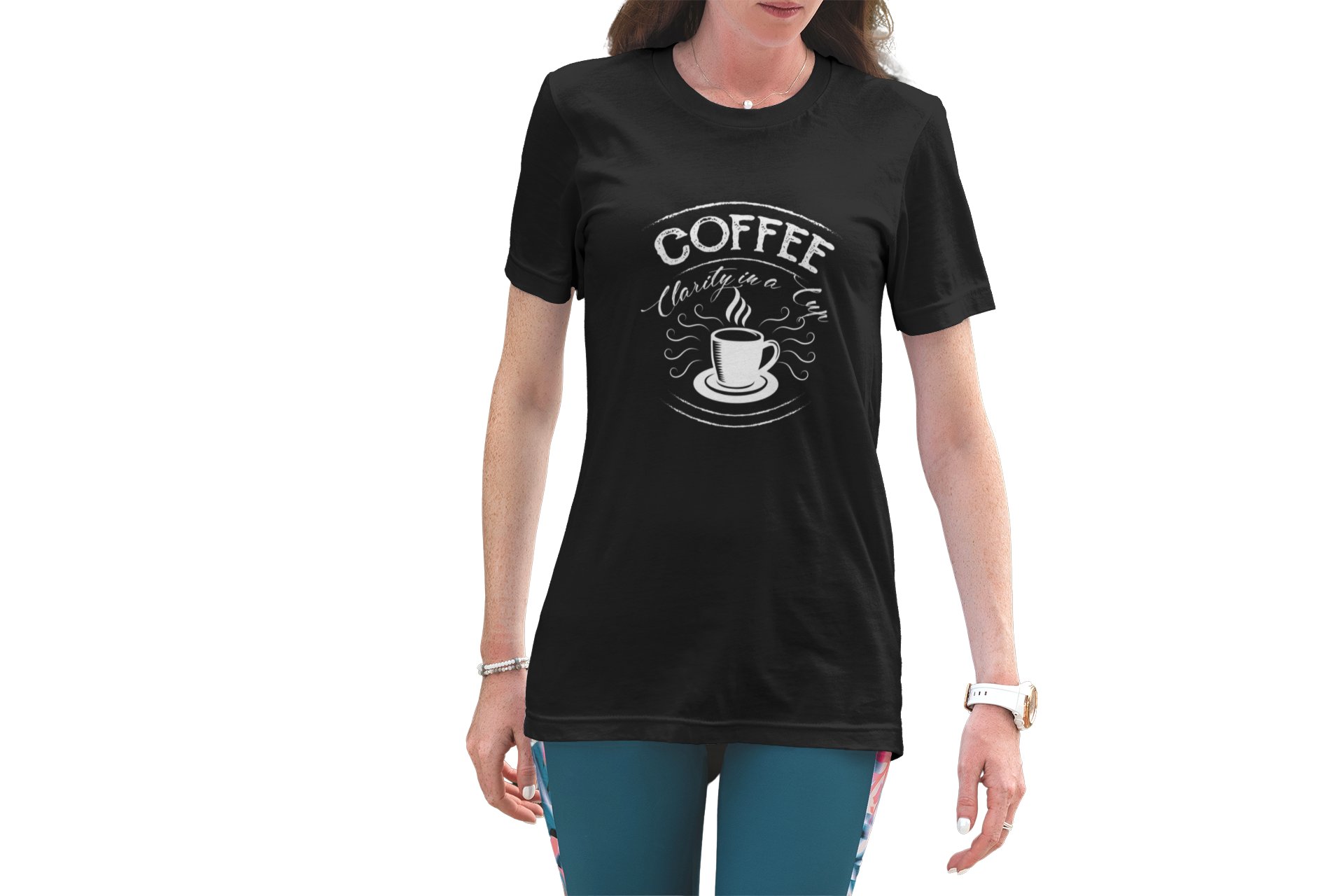 Coffee clarity in a cup - Black - printed t shirt - comfortable round neck cotton.