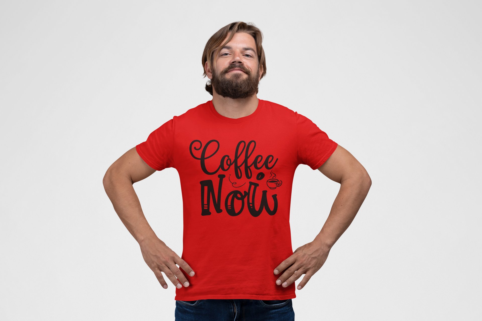 Coffee now - Red - printed t shirt - comfortable round neck cotton.
