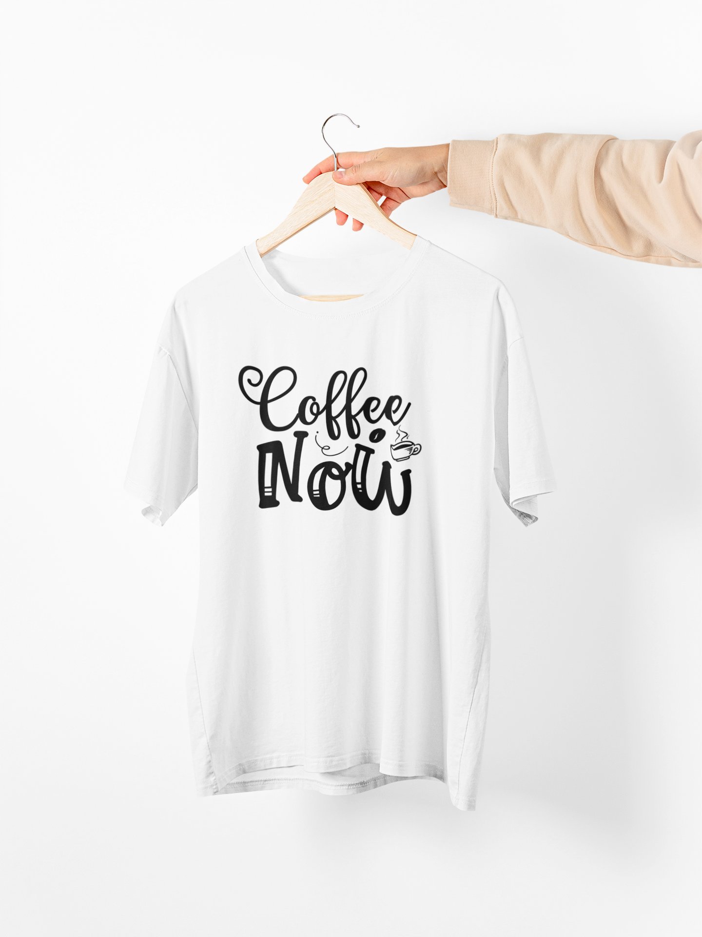 Coffee now - White - printed t shirt - comfortable round neck cotton.