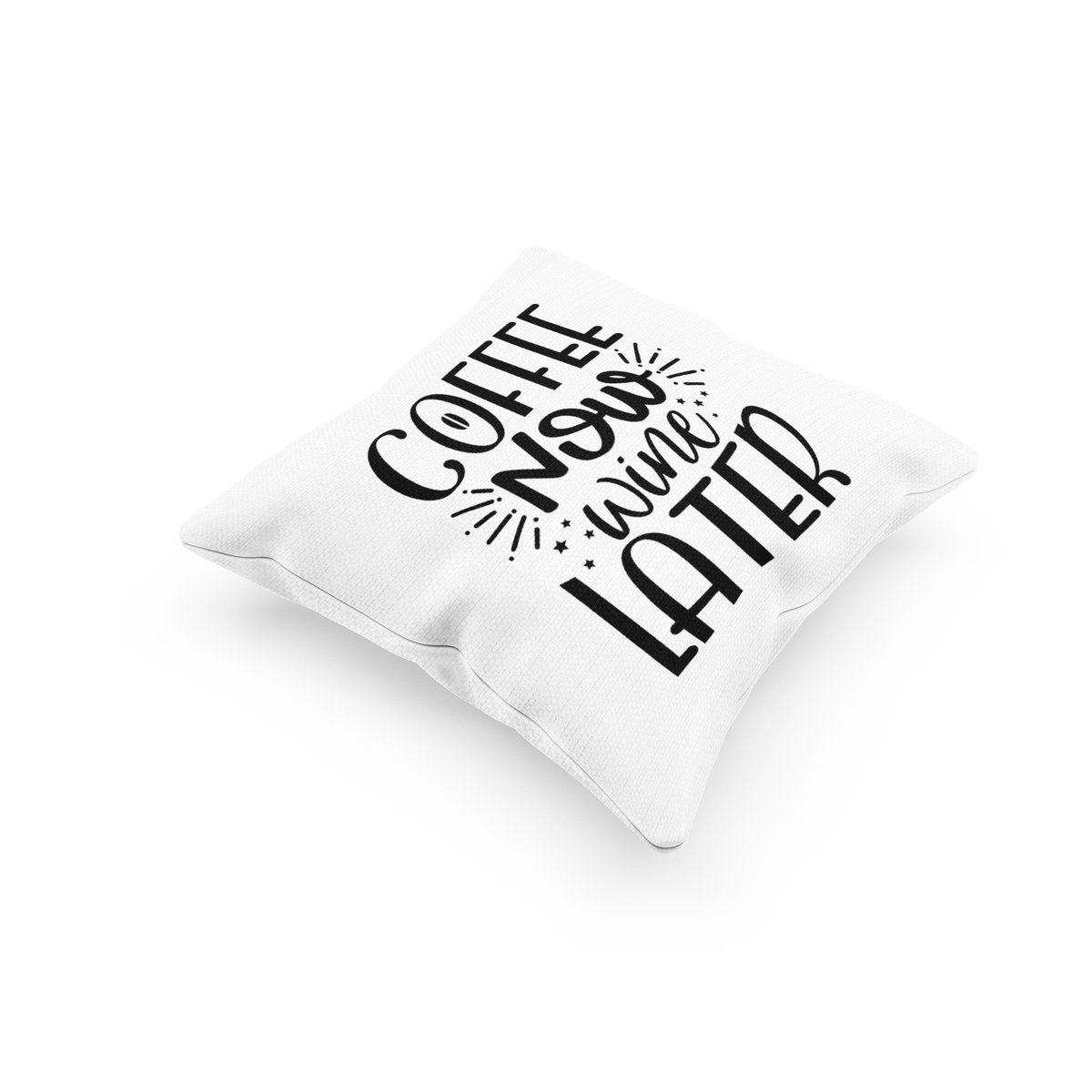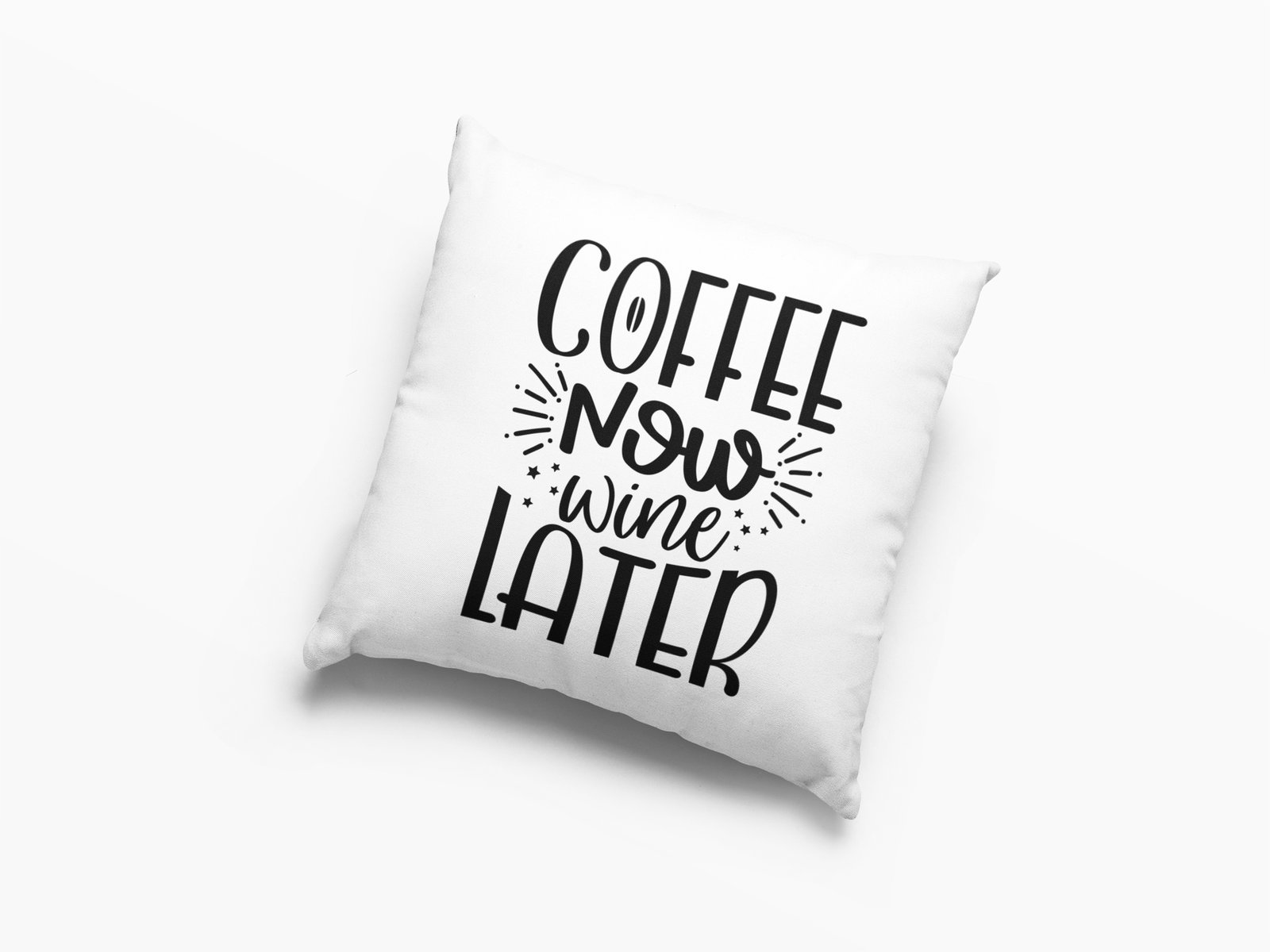 Coffee Now wine Later Text --Printed Pillow Covers(Pack Of 2)