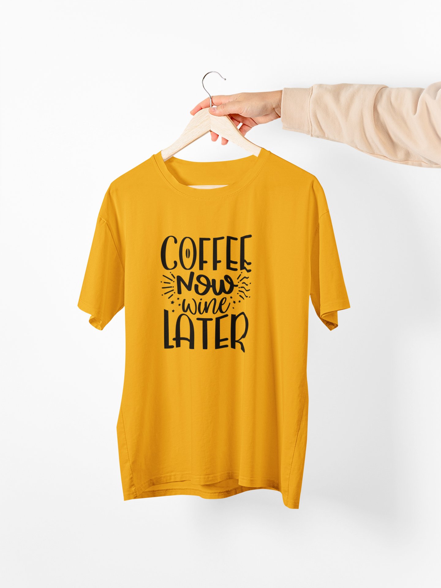 Coffee now wine later - Yellow - printed t shirt - comfortable round neck cotton.