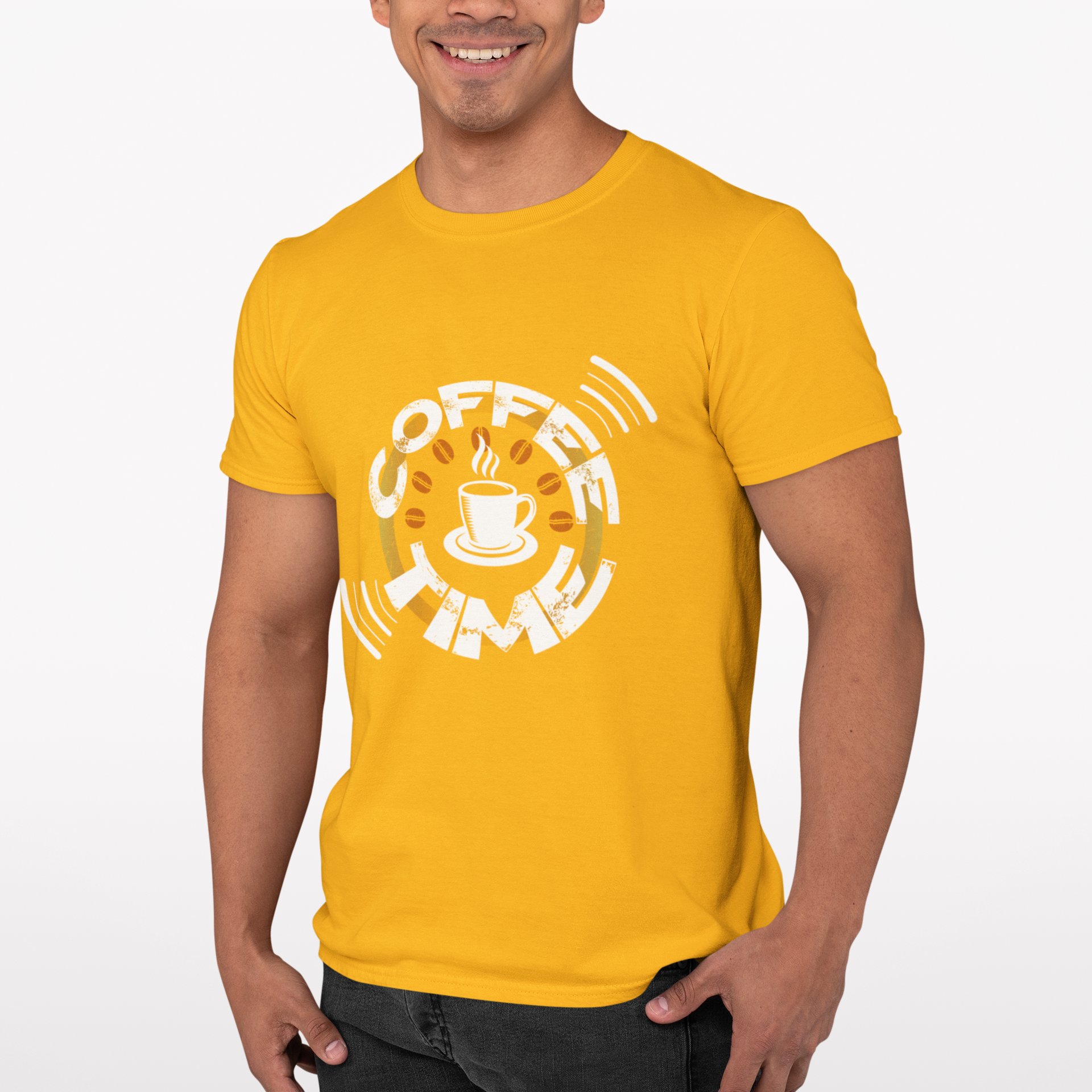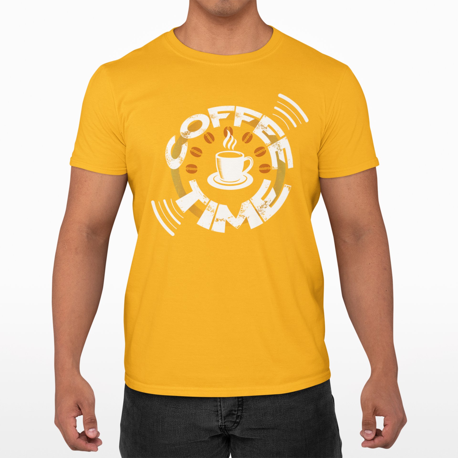 Coffee time - Yellow - printed t shirt - comfortable round neck cotton.