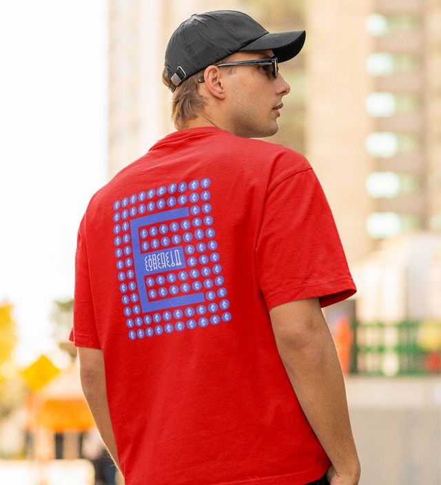 Colourful Cryptocosm Wings Red Round Neck Cotton Half Sleeved Men's T-Shirt with Printed Graphics