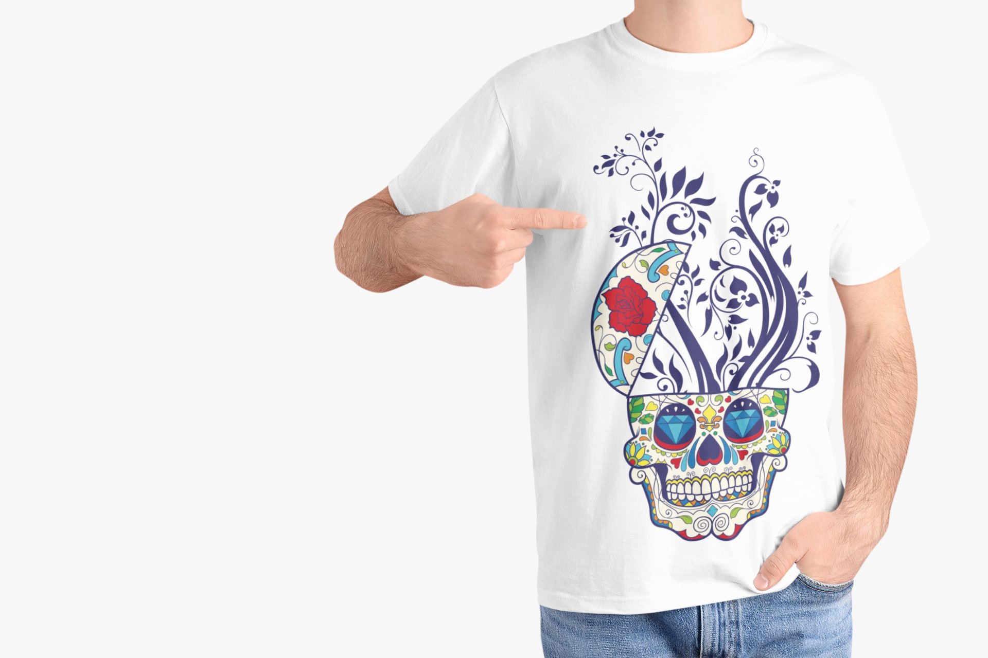 Colourful open mind skull - White - printed T-shirts - Men's stylish clothing - Cool tees for boys