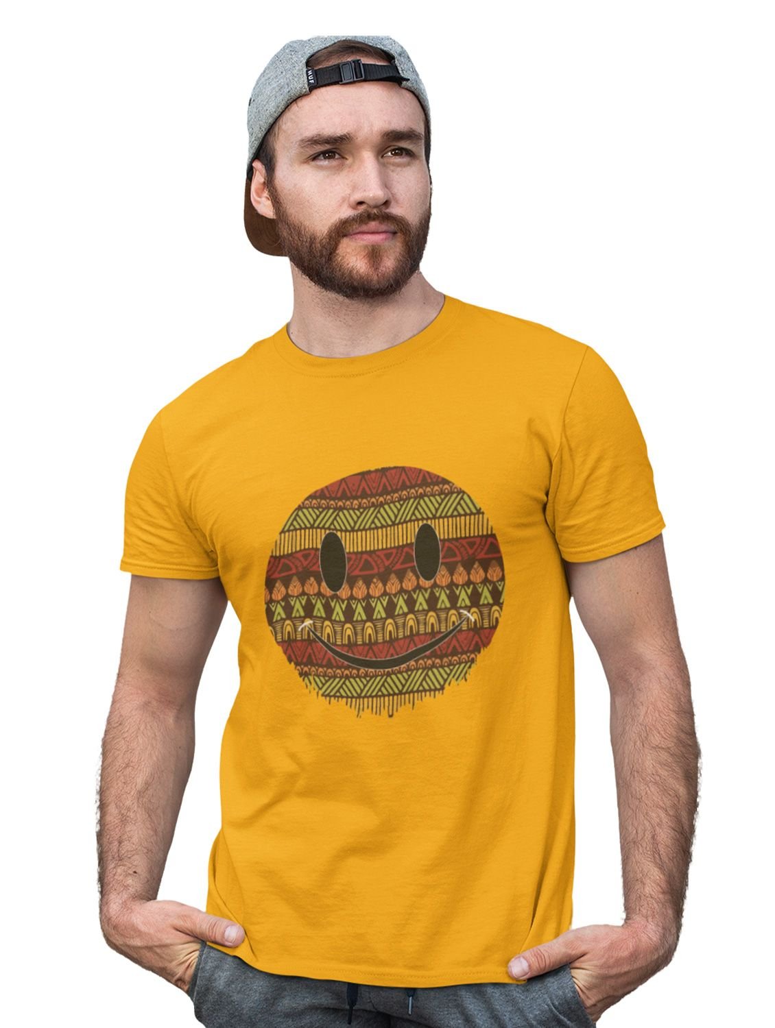 Colourful Patterns in Smiley Emoji Printed T-shirt (Yellow) - Clothes for Emoji Lovers - Suitable for Fun Events - Foremost Gifting Material for Your Friends and Close Ones