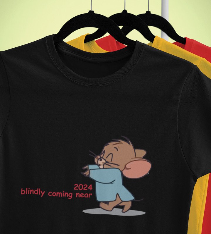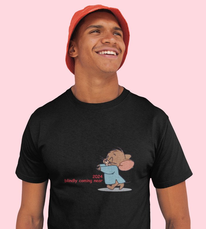 Come Faster 2024 Black Printed T-shirt For Mens On New Year Theme