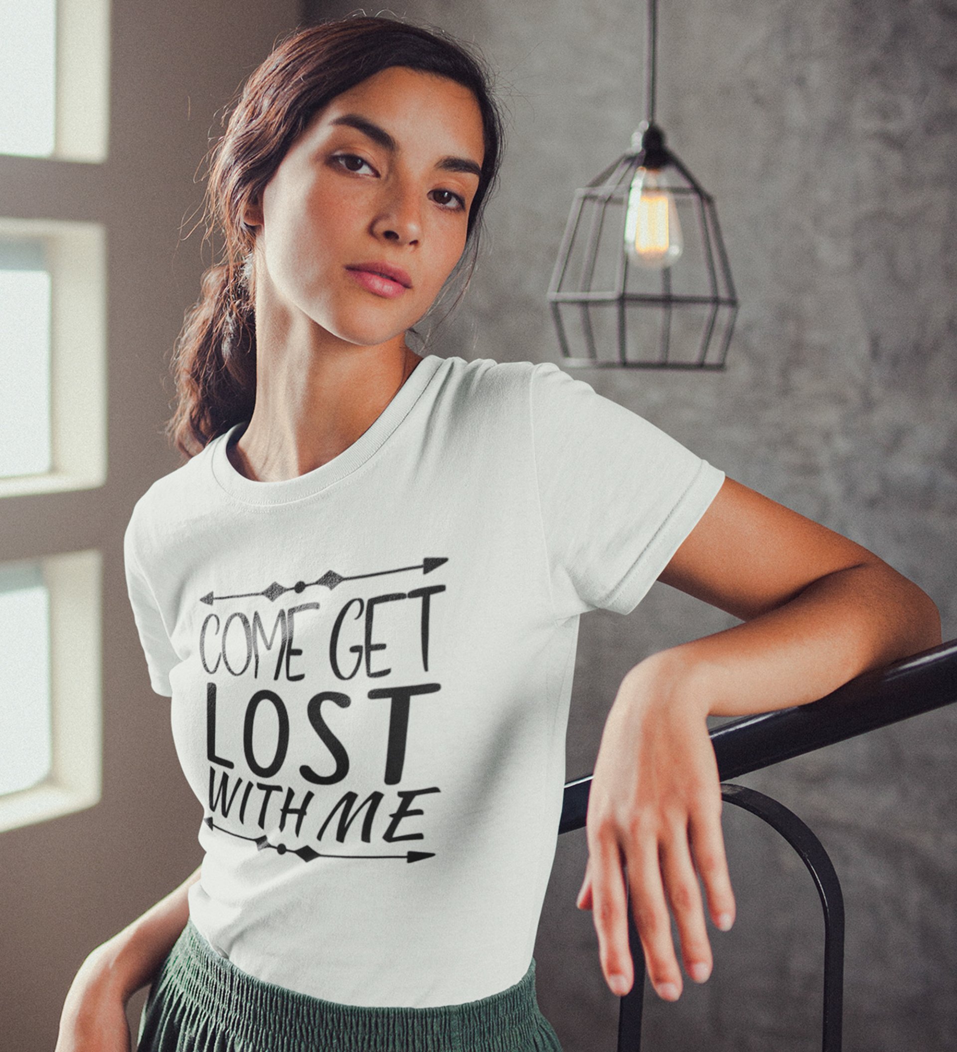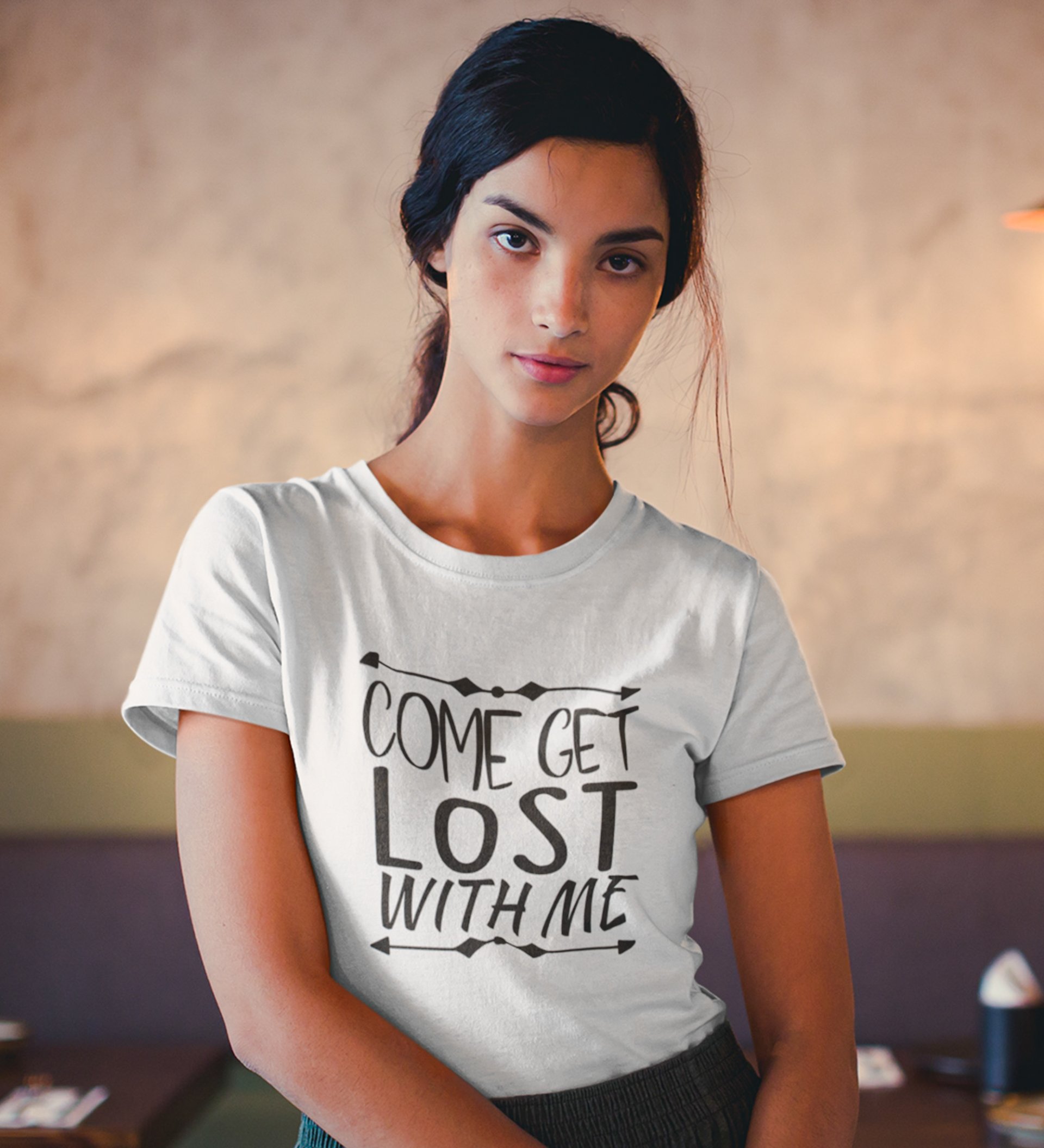 Lost With Me White Round Neck Cotton Half Sleeved Women's T-Shirt with Printed Graphics