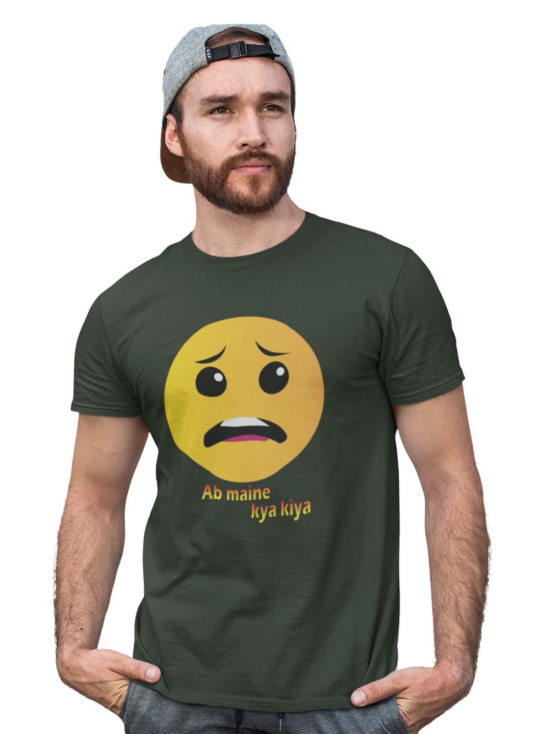 Confused Emoji Printed T-shirt (Green) -Foremost Gifting Material for Your Friends and Close Ones