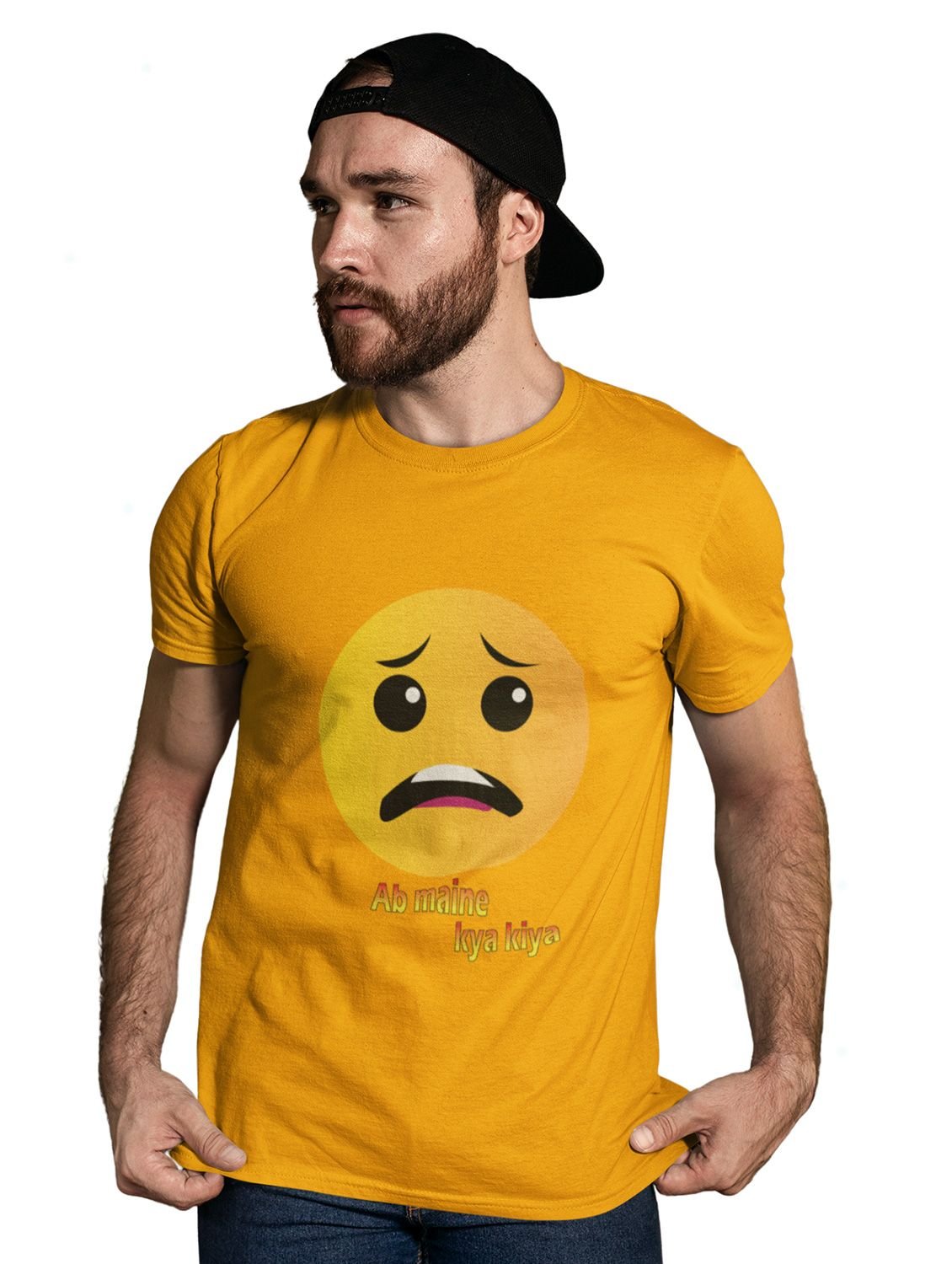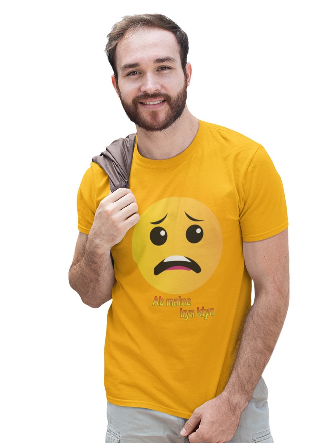 Confused Emoji Printed T-shirt (Yellow) - Clothes for Emoji Lovers - Suitable for Fun Events - Foremost Gifting Material for Your Friends and Close Ones